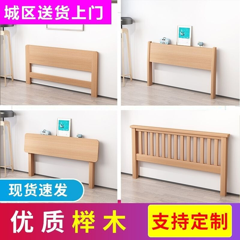 实木榉木床头板1.5新款靠背板1.8米简约现代榻榻米双人床头单买缘
