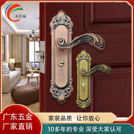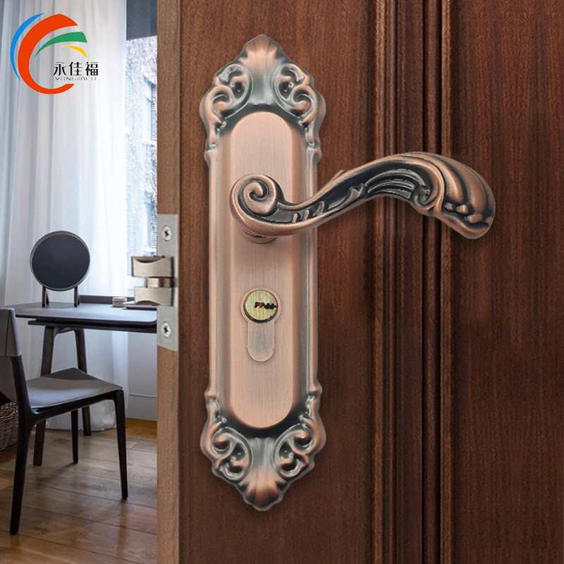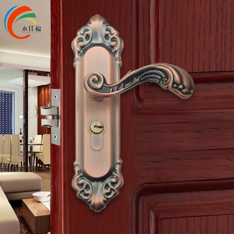永佳福静音门锁单舌室内实木门家用锁具145孔红古铜欧式房间锁