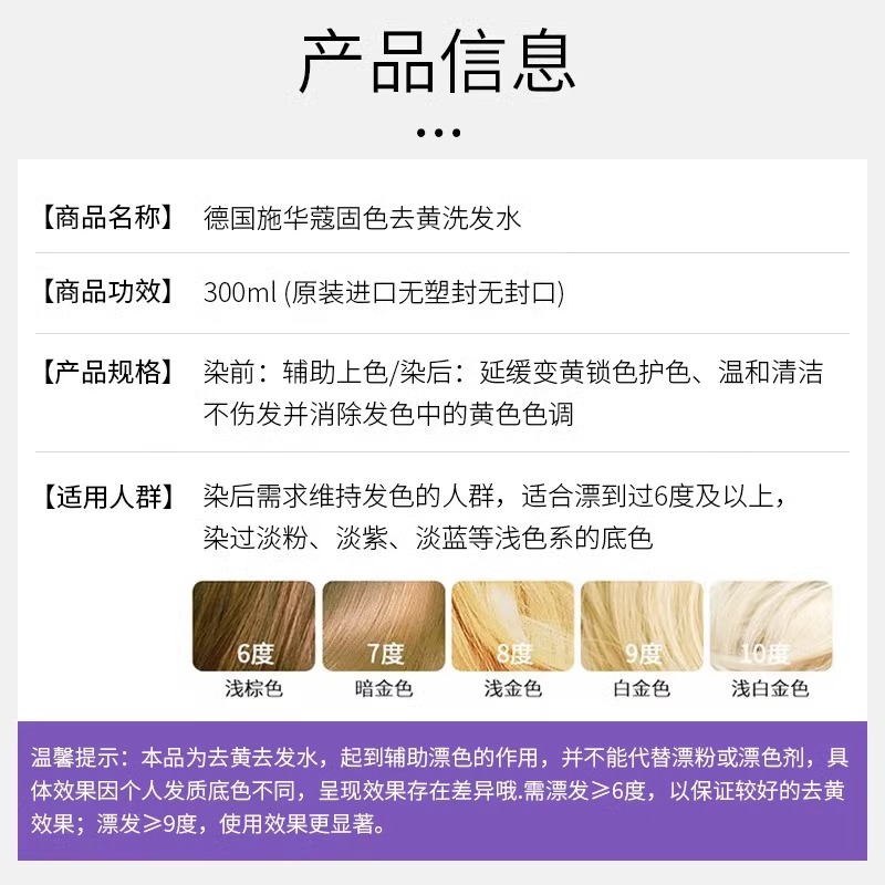 施华蔻去黄洗发水染后固色补色锁色紫色祛黄洗发露goodbye yellow