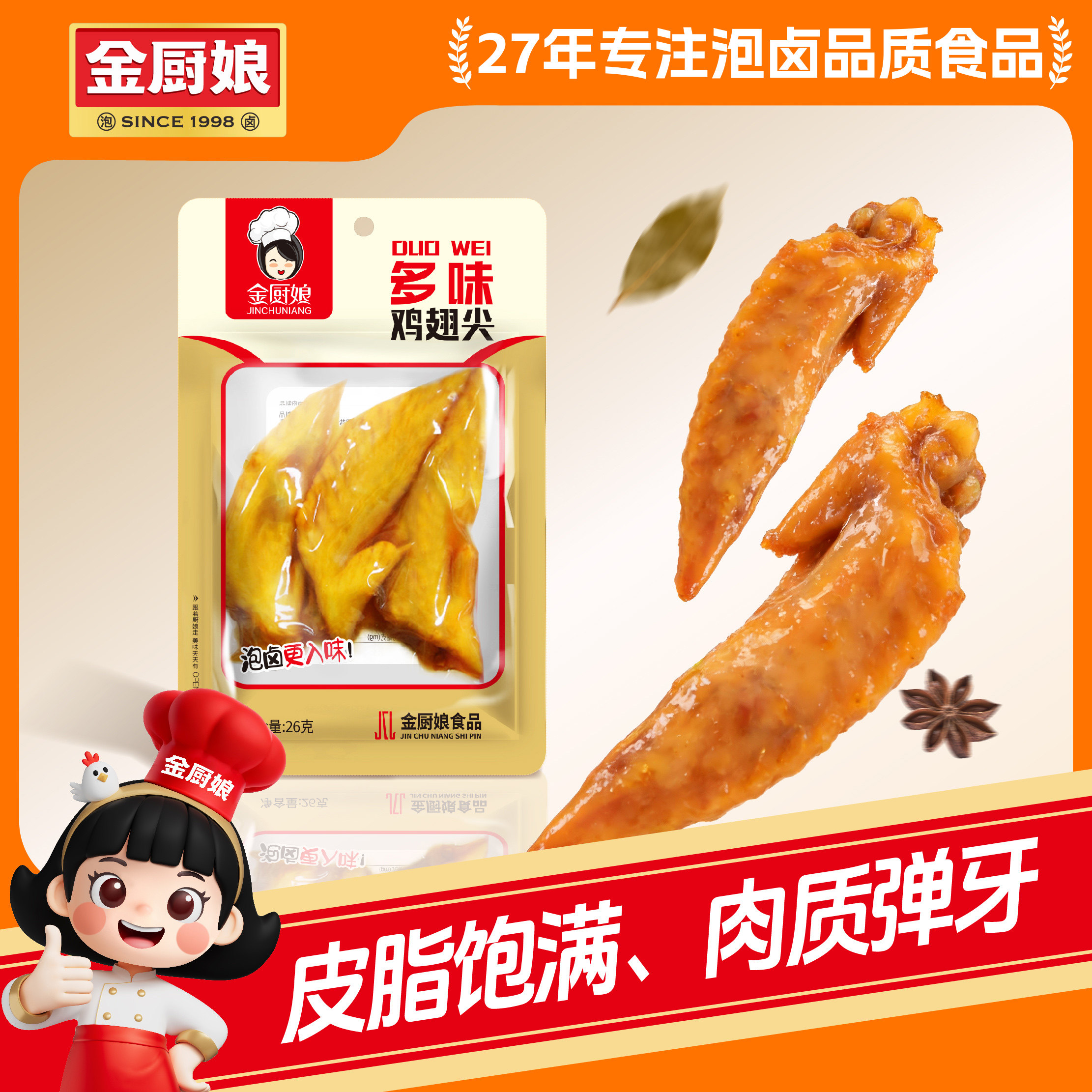 金厨娘多味鸡尖26g*25包邮卤味熟食休闲小吃零食真空辣味鸡翅尖