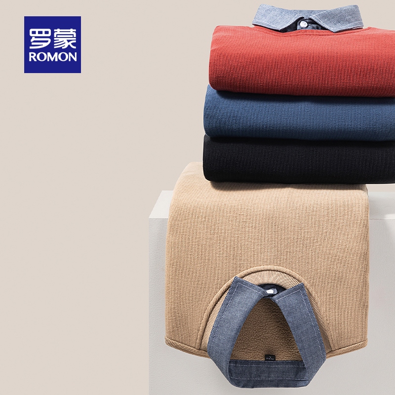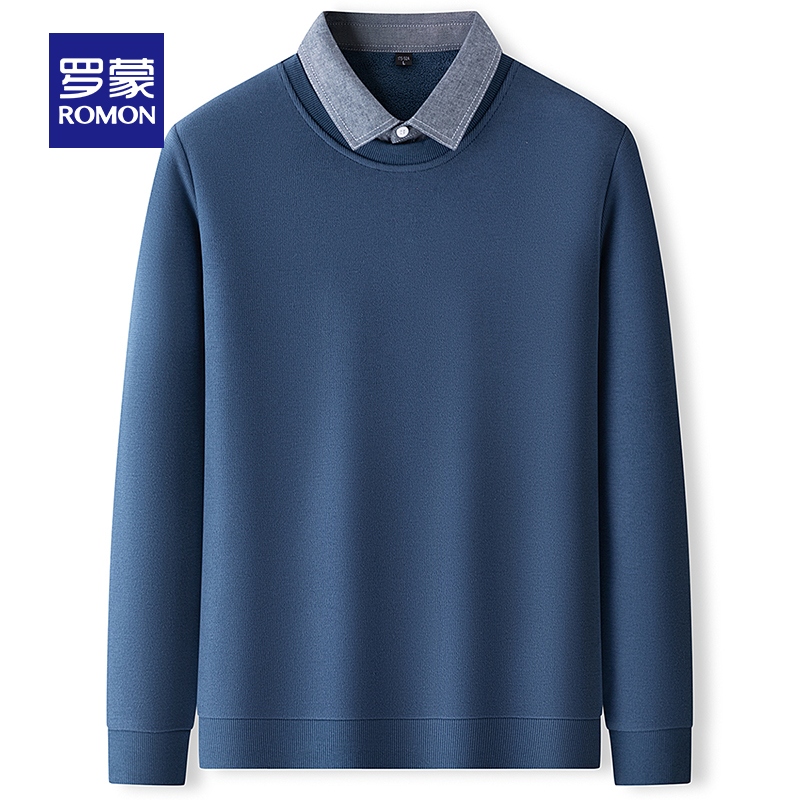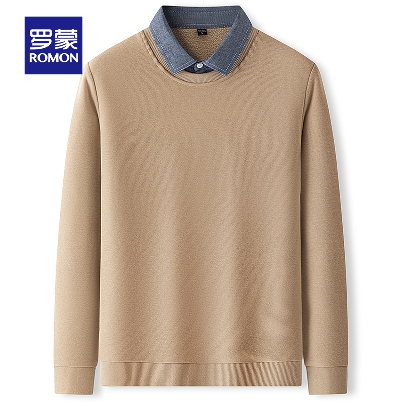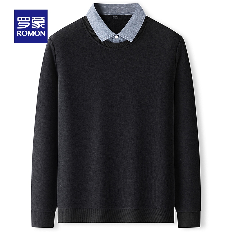 【加绒保暖】罗蒙男士衬衫领假两件针织衫2025冬季新款休闲毛衣男