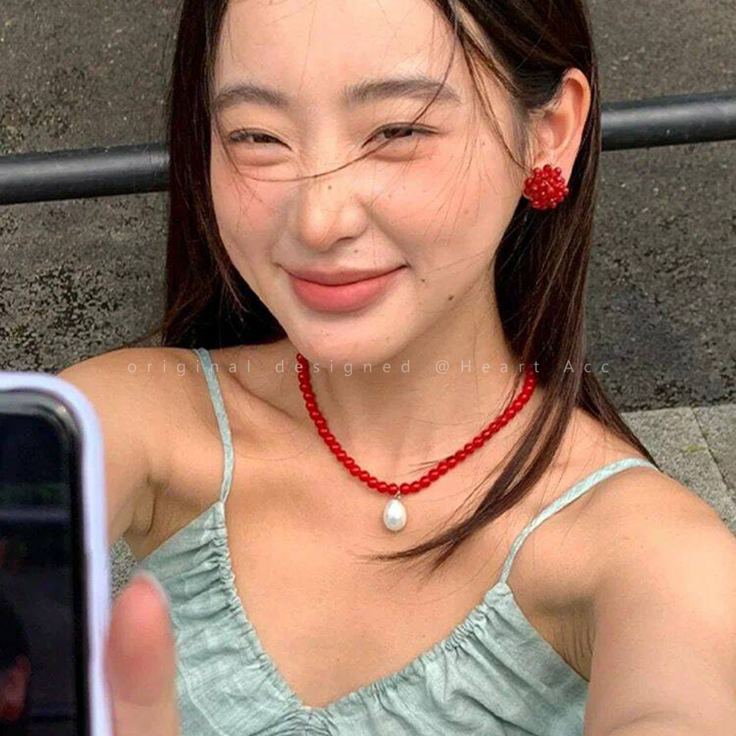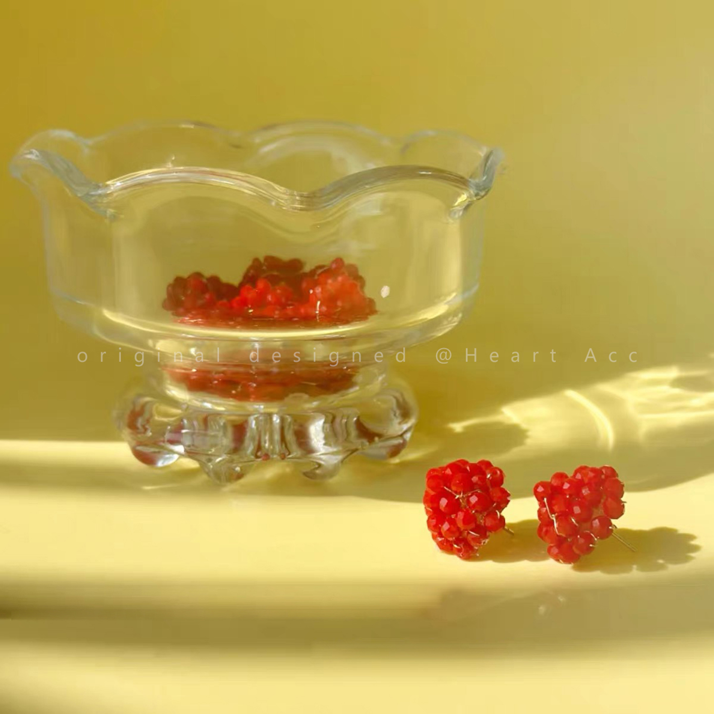 树莓女孩!显白红色串珠耳环女2025新款独特漂亮耳钉高级耳夹耳饰