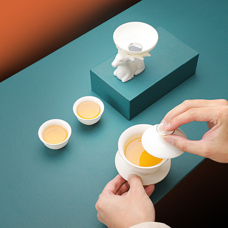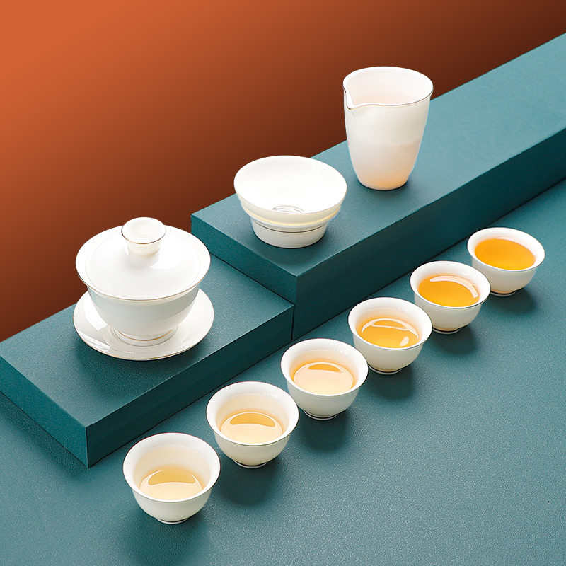 羊脂玉白瓷茶具套装功夫茶杯家用客厅办公室会客德化泡茶陶瓷盖碗