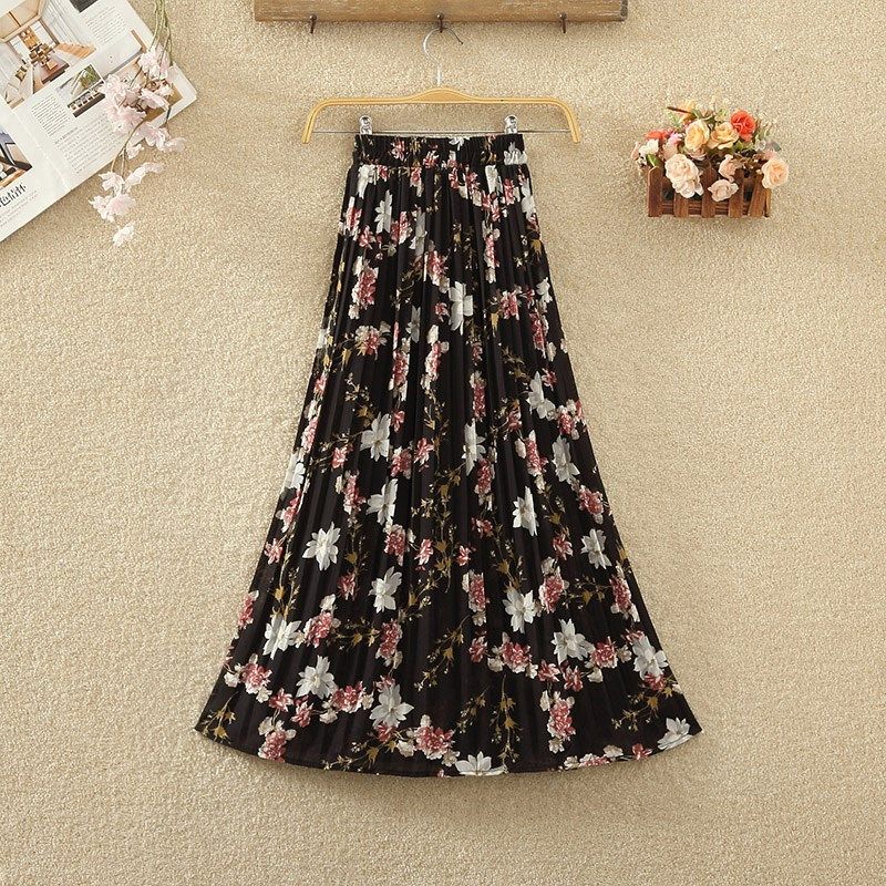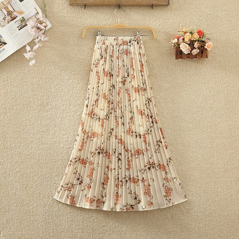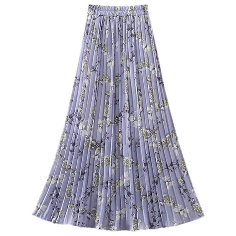 碎花百褶裙半身裙女春夏新款高腰垂感雪纺L裙子大摆a字裙半裙长裙