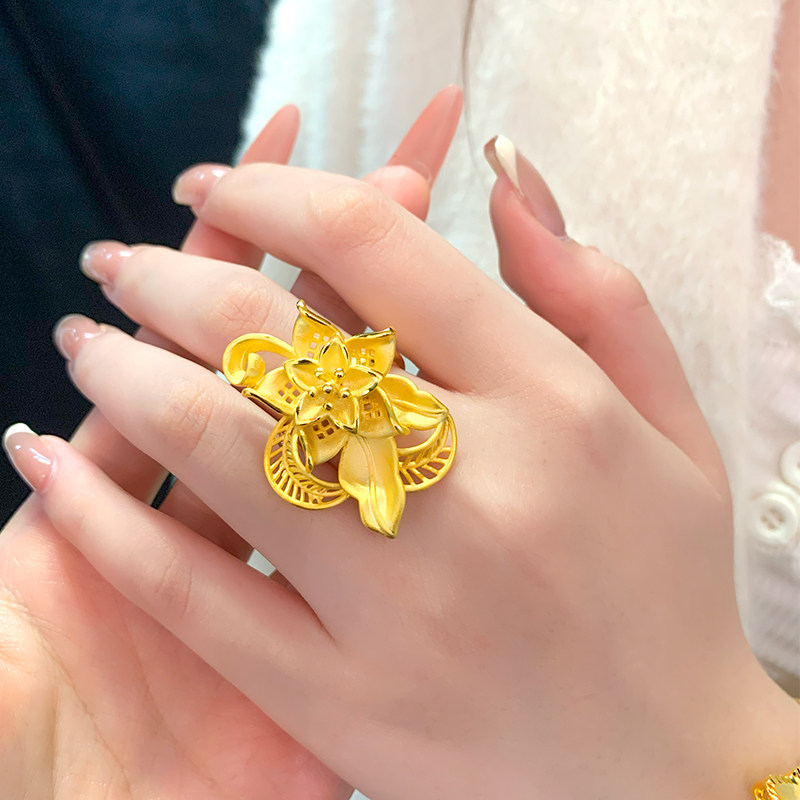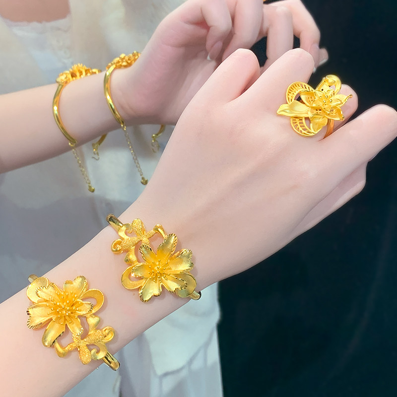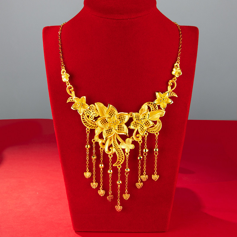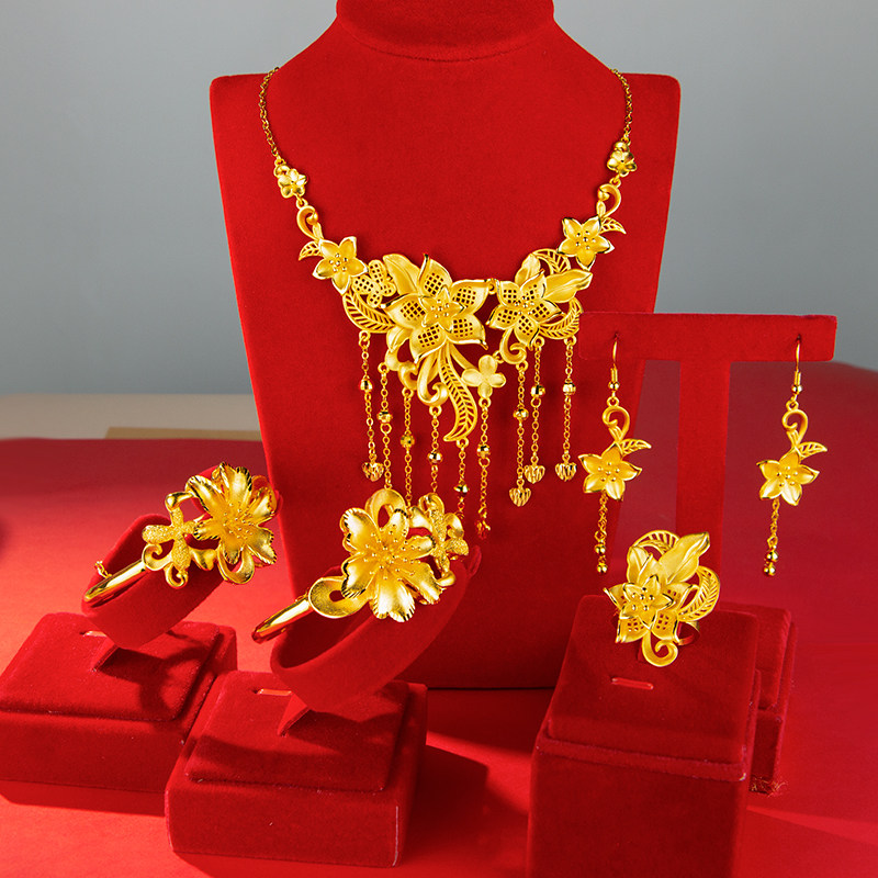 新款镀黄金色新娘结婚花项链女款仿真金婚庆三金五金首饰套装道具