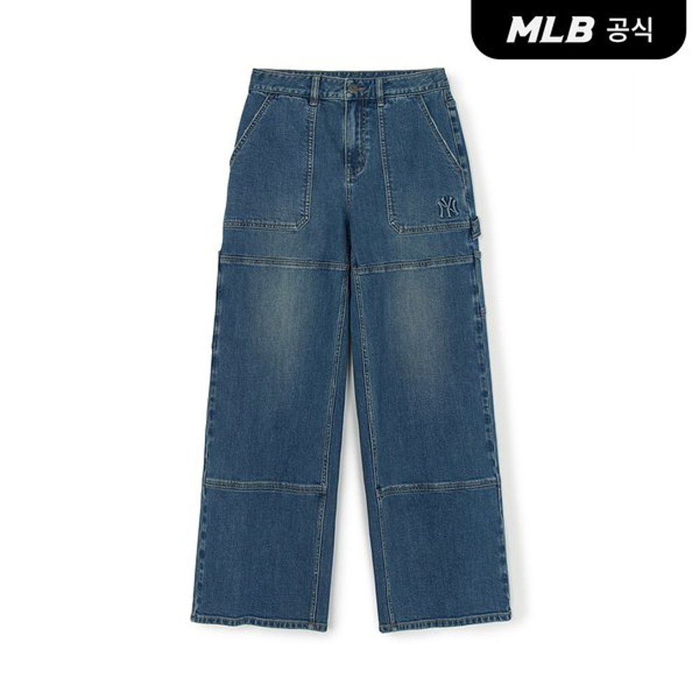 韩国直邮MLB 纽约女士基本款小徽标复古木匠宽牛仔长裤(靛蓝色)