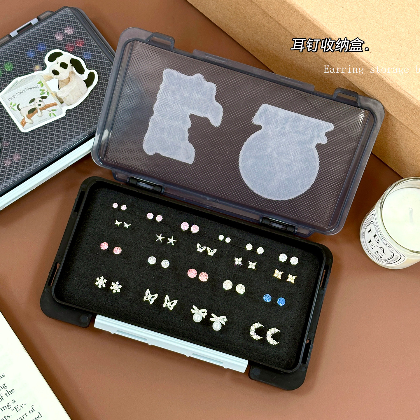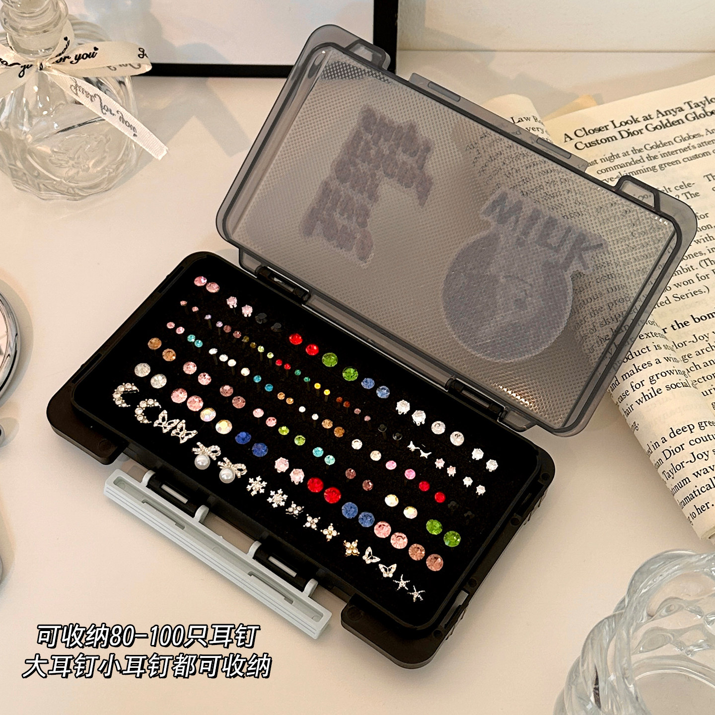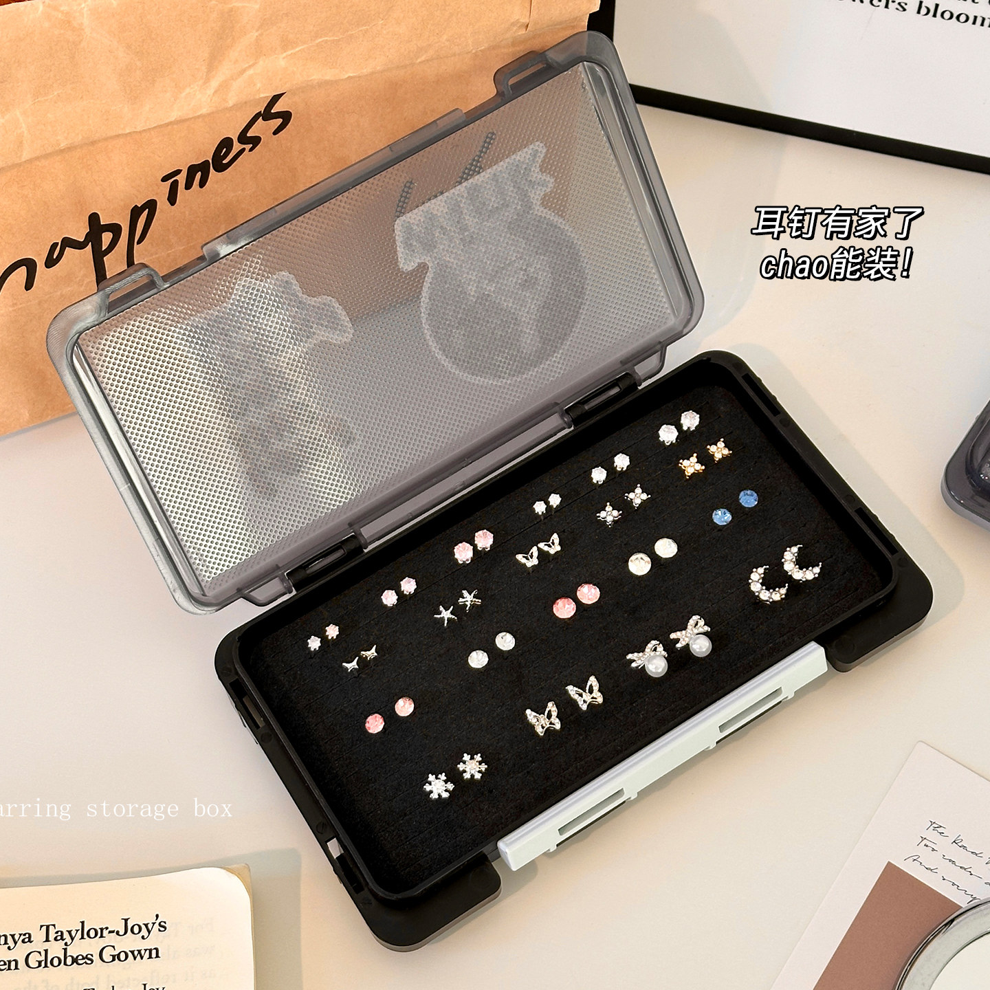 首饰盒耳钉华子专用收纳盒大容量防尘精致便携耳饰饰品整理盒子