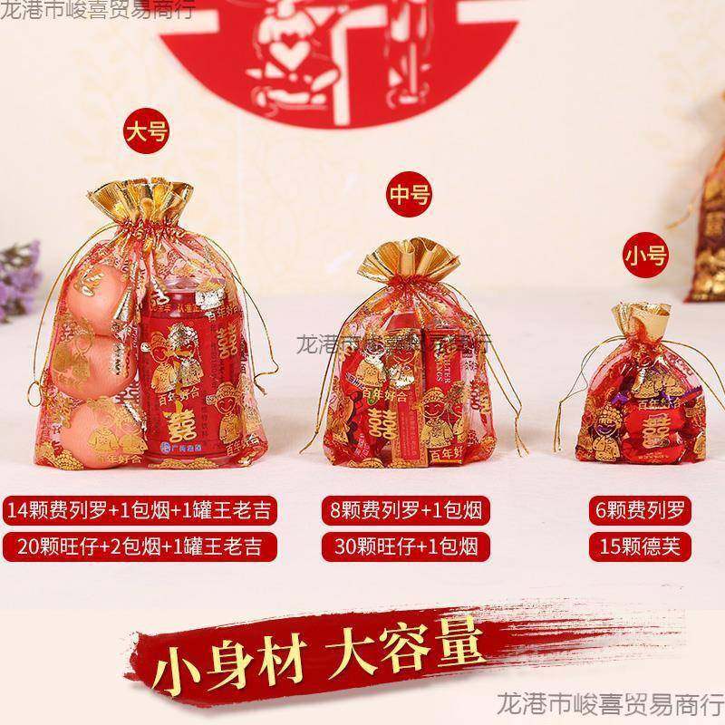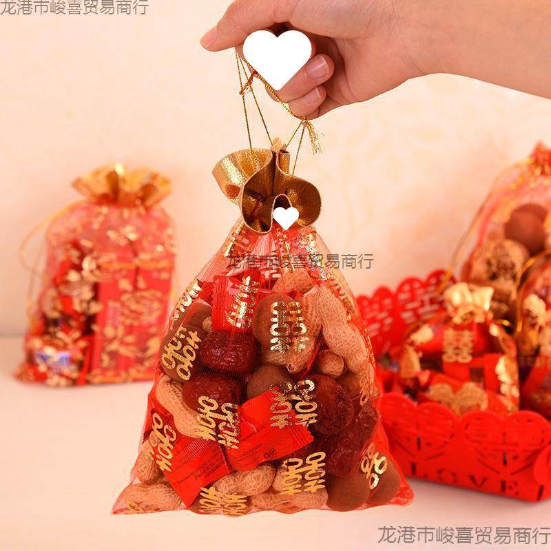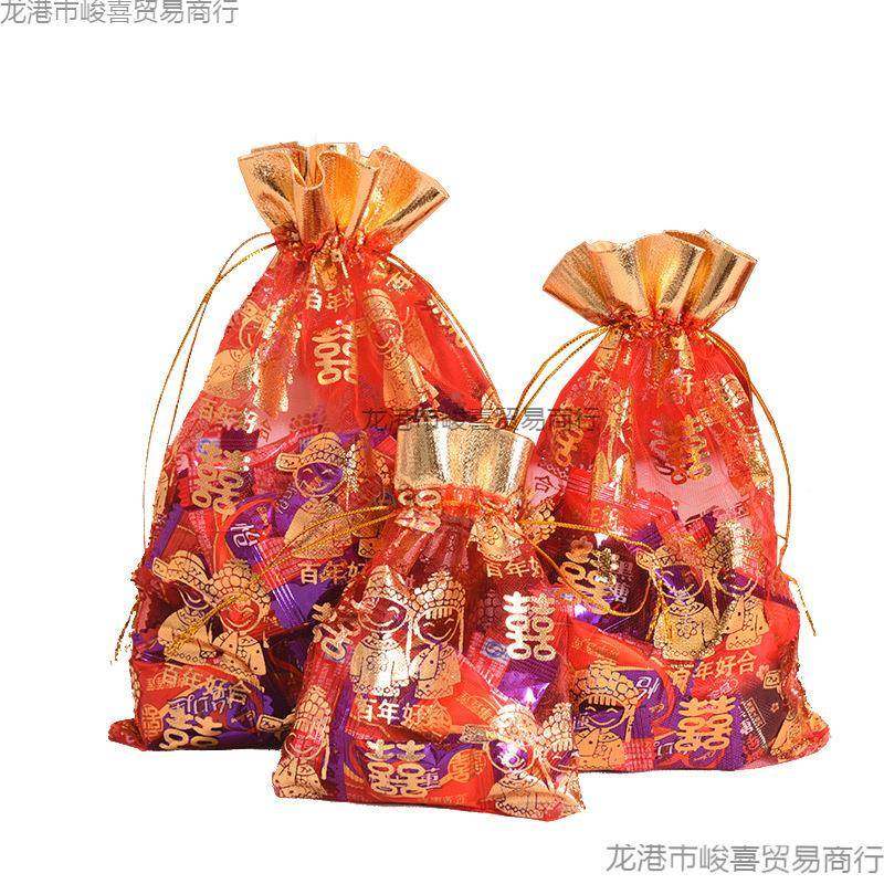 婚庆中式喜糖袋子结婚专用纱袋婚礼喜袋网红糖果袋网纱瓜子花生袋