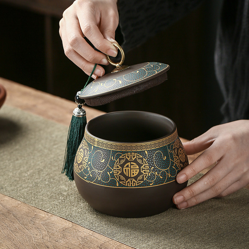 中式茶叶罐精品高档家用普洱茶醒茶罐紫砂密封罐储物罐高级感摆件