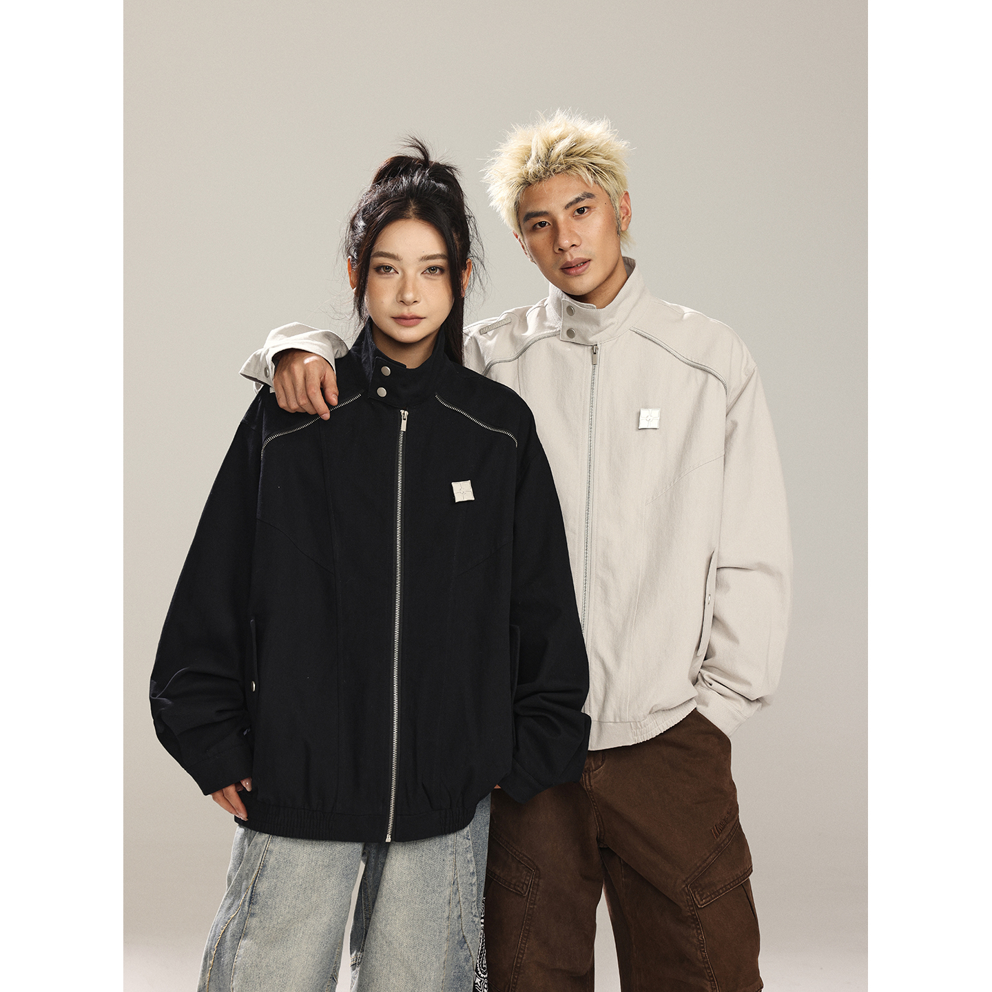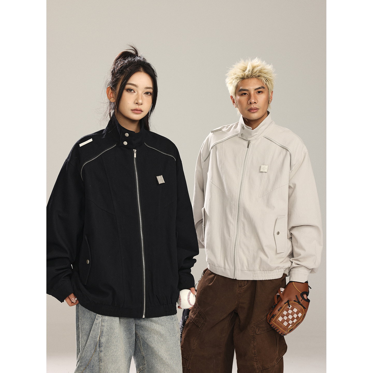 MANYSTON美式立领纯棉夹克男款春秋季潮牌宽松青少年休闲工装外套