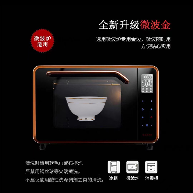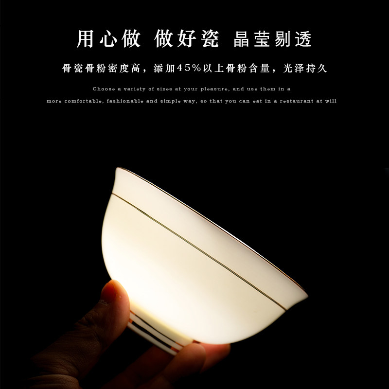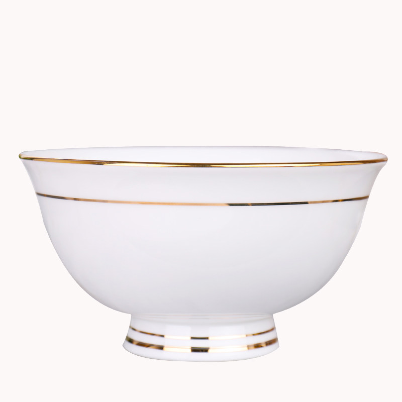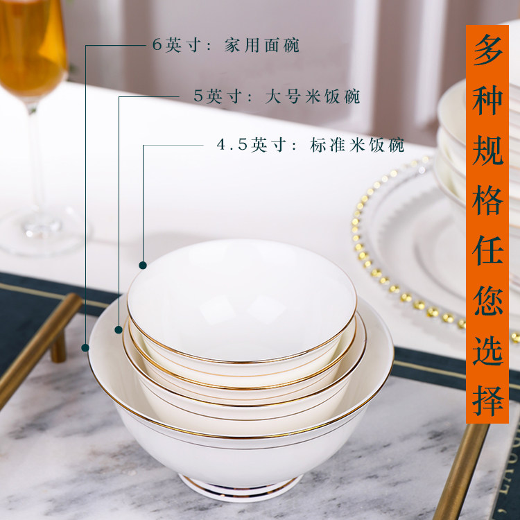 金边骨瓷饭碗家用高档白色景德镇陶瓷防烫高脚碗米饭碗精致小汤碗