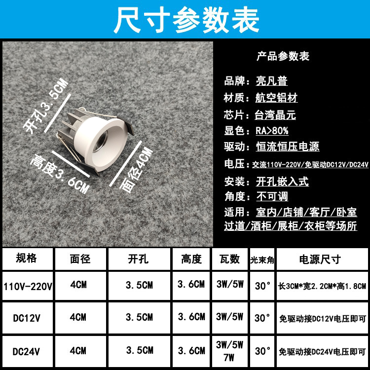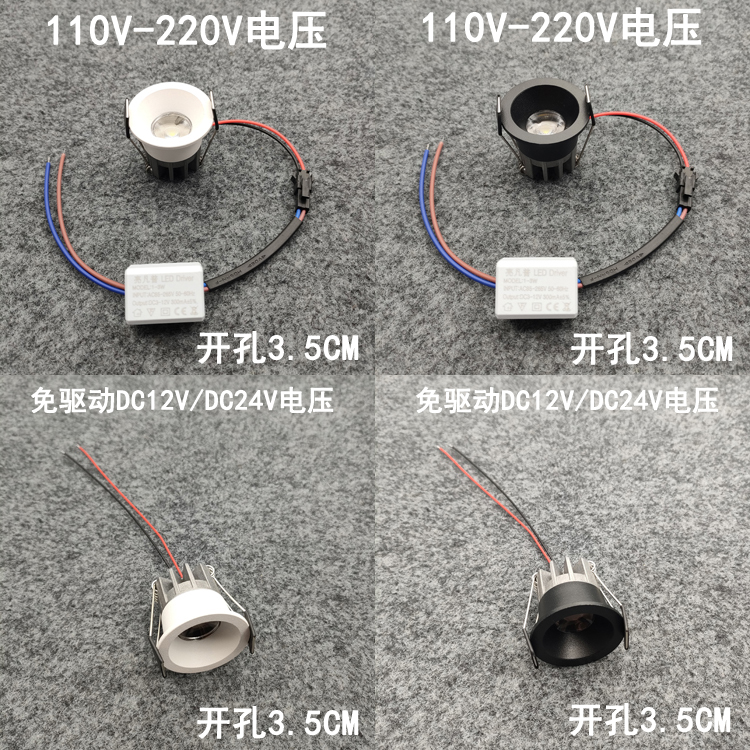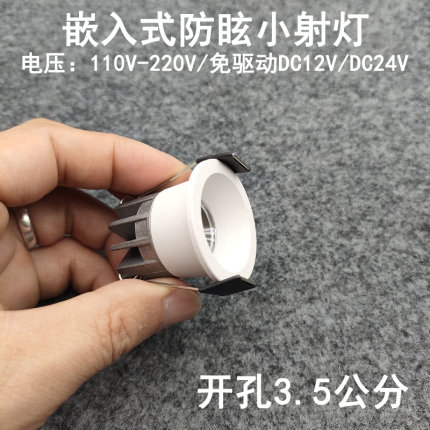 220V12V24V窄边防眩led小射灯开孔3.5公分嵌入式天花灯展柜牛眼灯