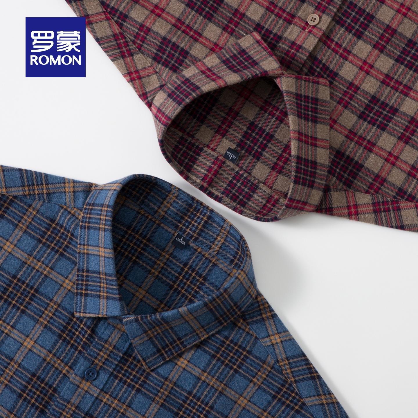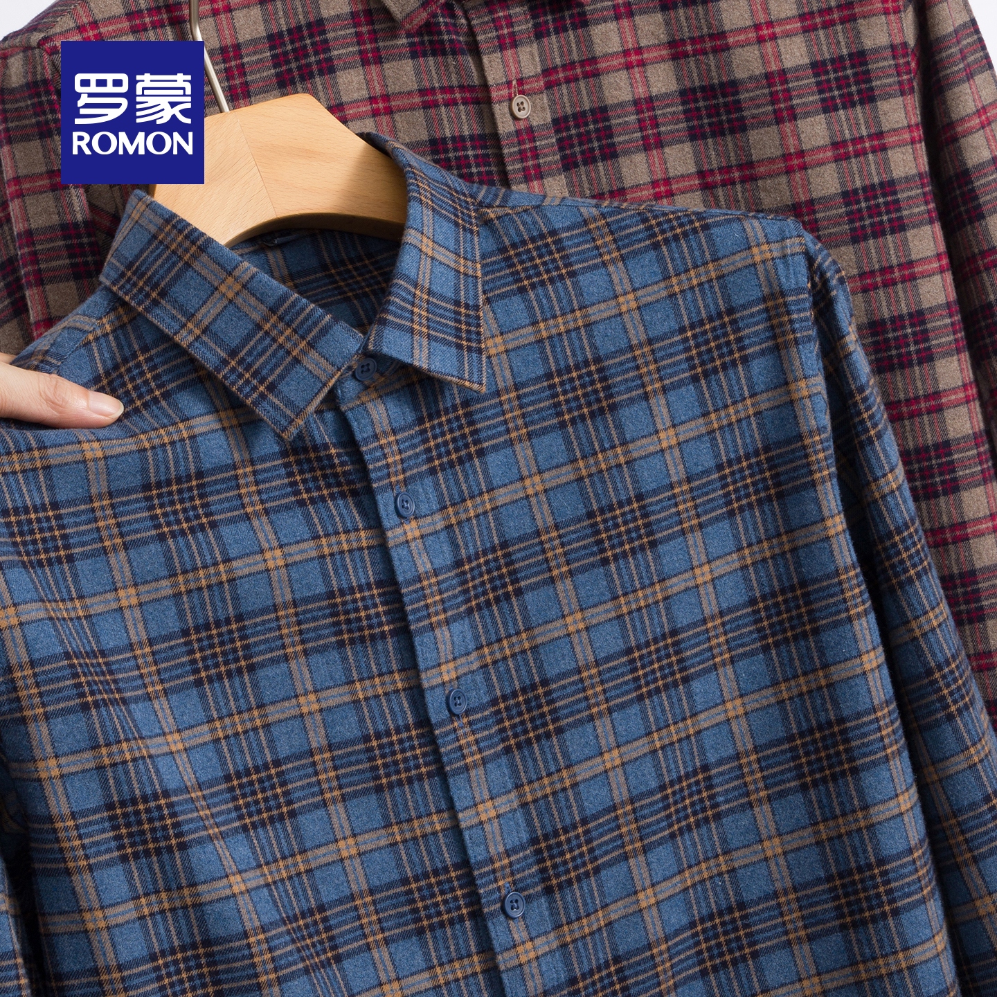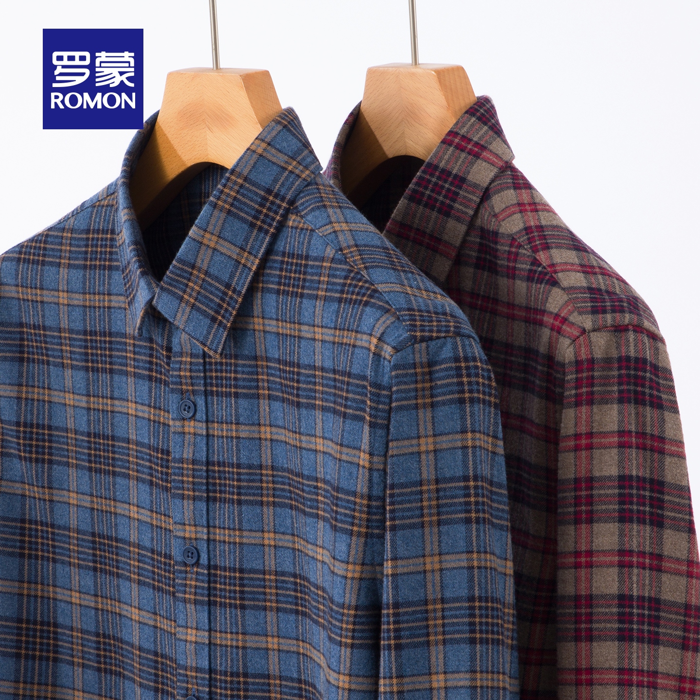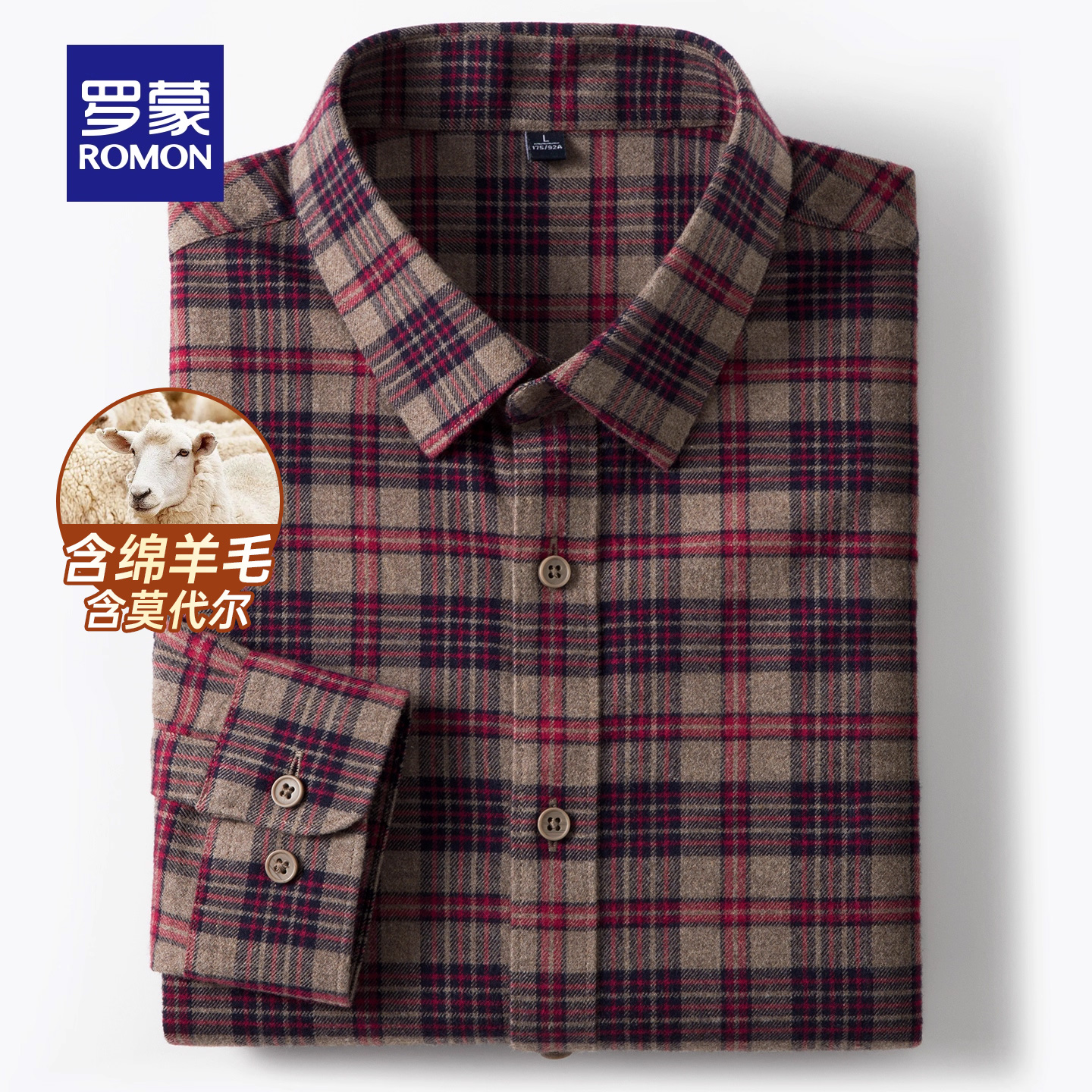 【含莫代尔+绵羊毛】罗蒙男士复古长袖衬衫2025秋季新款磨毛衬衣