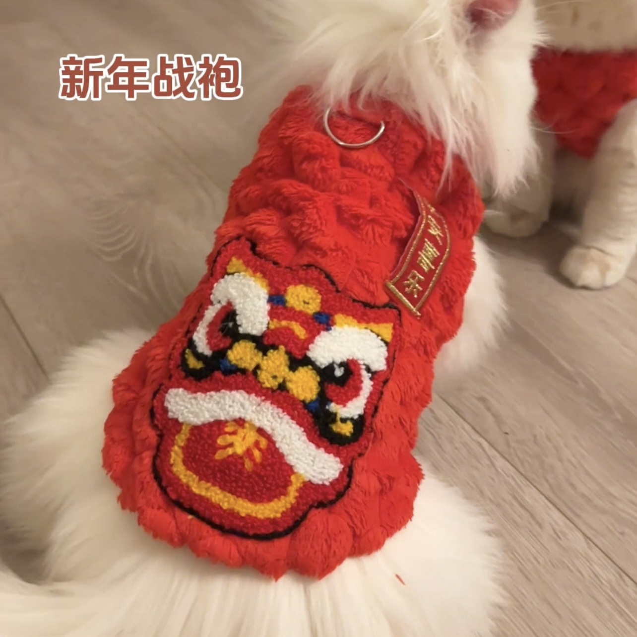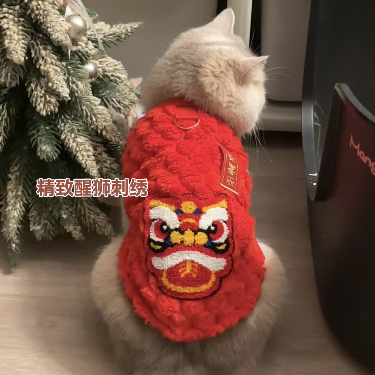 新款大红宠物衣服猫咪狗狗新年加绒背心喜乐醒狮服饰蓝金渐层比熊