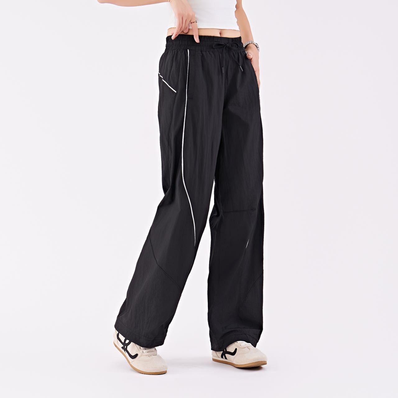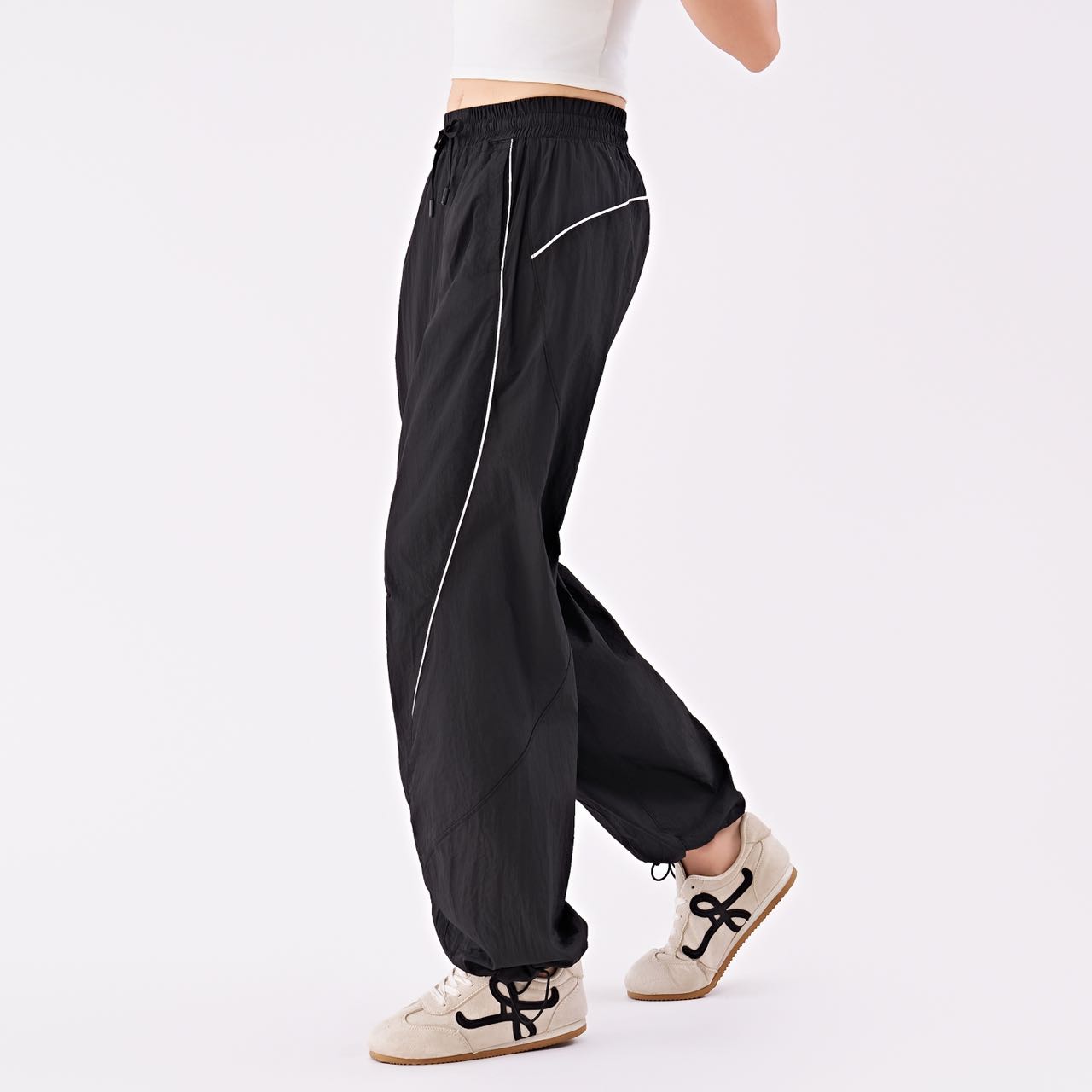 lulu休闲运动裤黑色女2025新款束脚宽松徒步登山裤直筒收脚束口