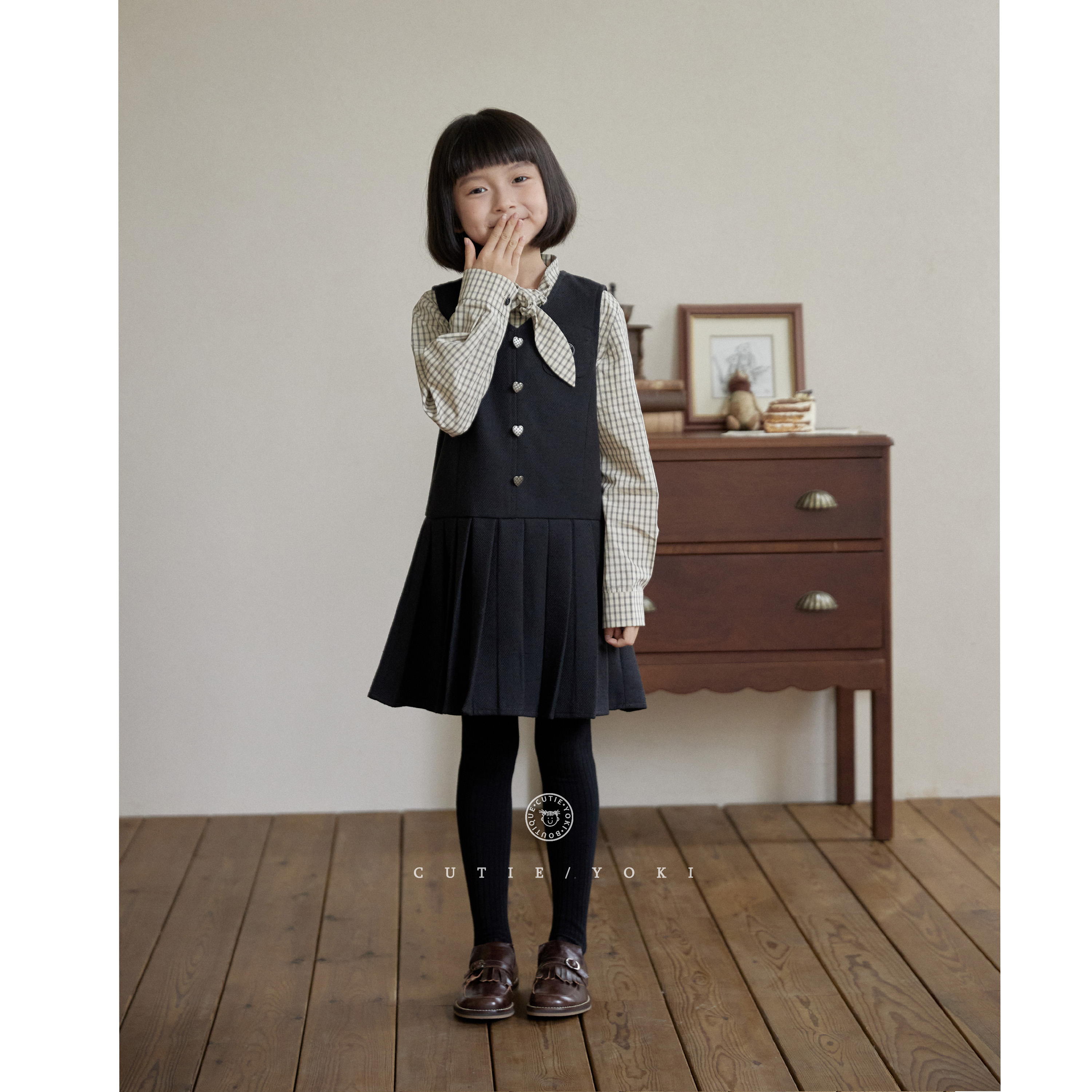 yoki童装女童学生服连衣裙学院风格子长袖衬衫背心裙