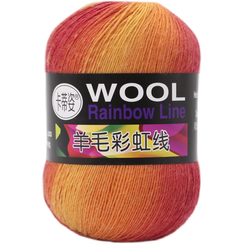 彩虹线羊毛线毯子坐垫外套披肩围巾帽子长段染花色多彩线手工编织