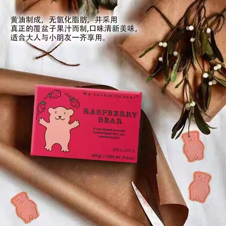 英国Millers米勒家卡通小熊黄油曲奇饼干树莓味香蕉年货礼物零食