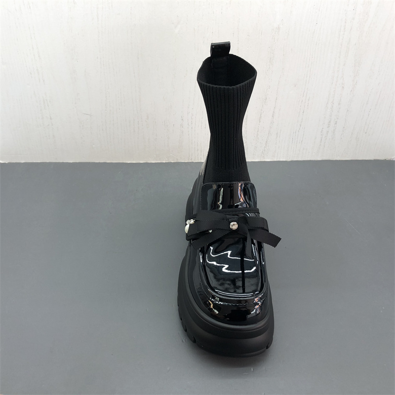 工厂新款断码女鞋秋季韩版时尚舒适圆头粗跟套筒弹力靴漆皮女短靴