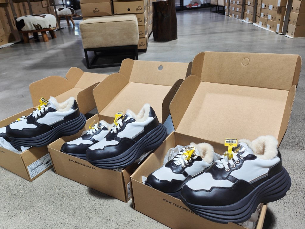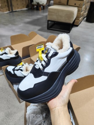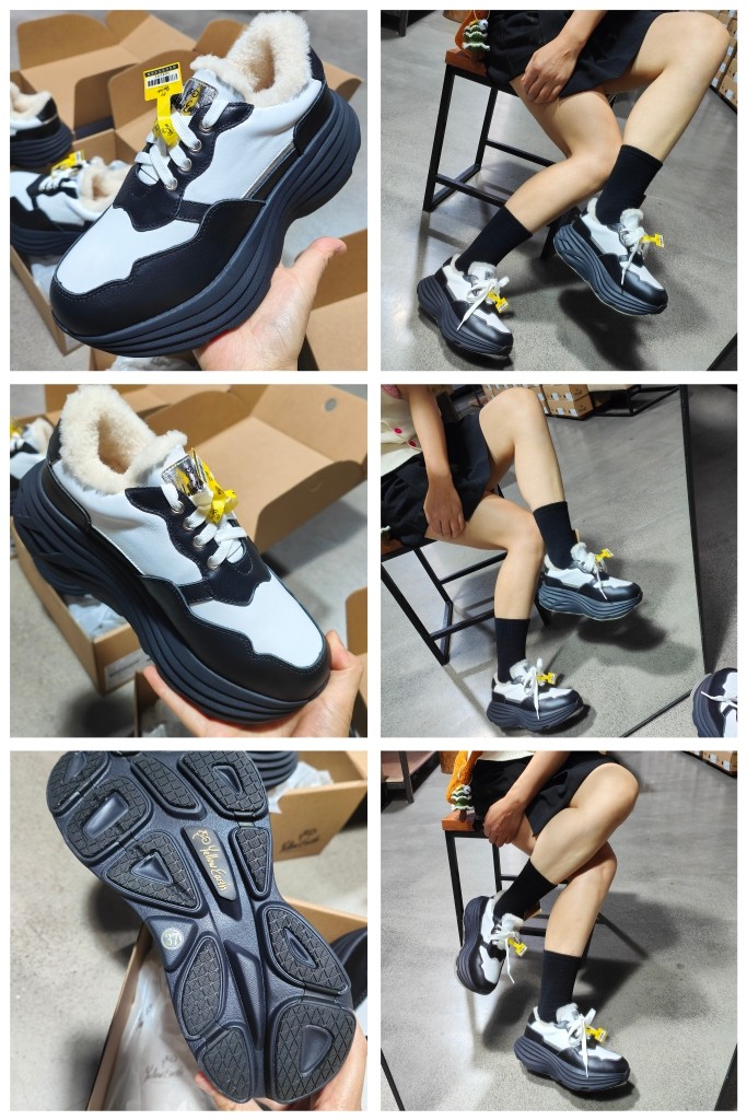 yellow earth新款牛皮羊皮毛一体增高厚底老爹熊猫雪地靴保暖加绒