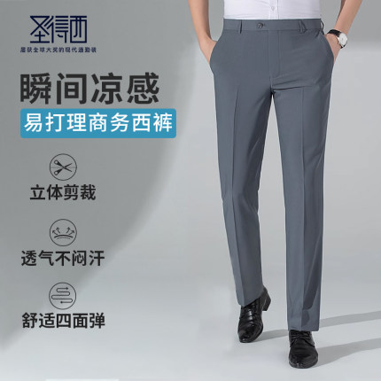 圣得西男士休闲裤2025夏季新款冰丝凉感商务通勤西裤工装直筒裤男