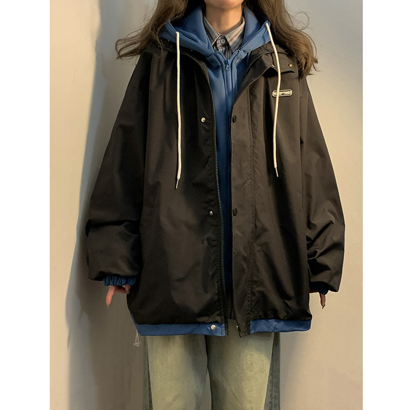 假两件外套女春秋季冲锋衣大码宽松早秋穿搭棒球服工装夹克上衣冬