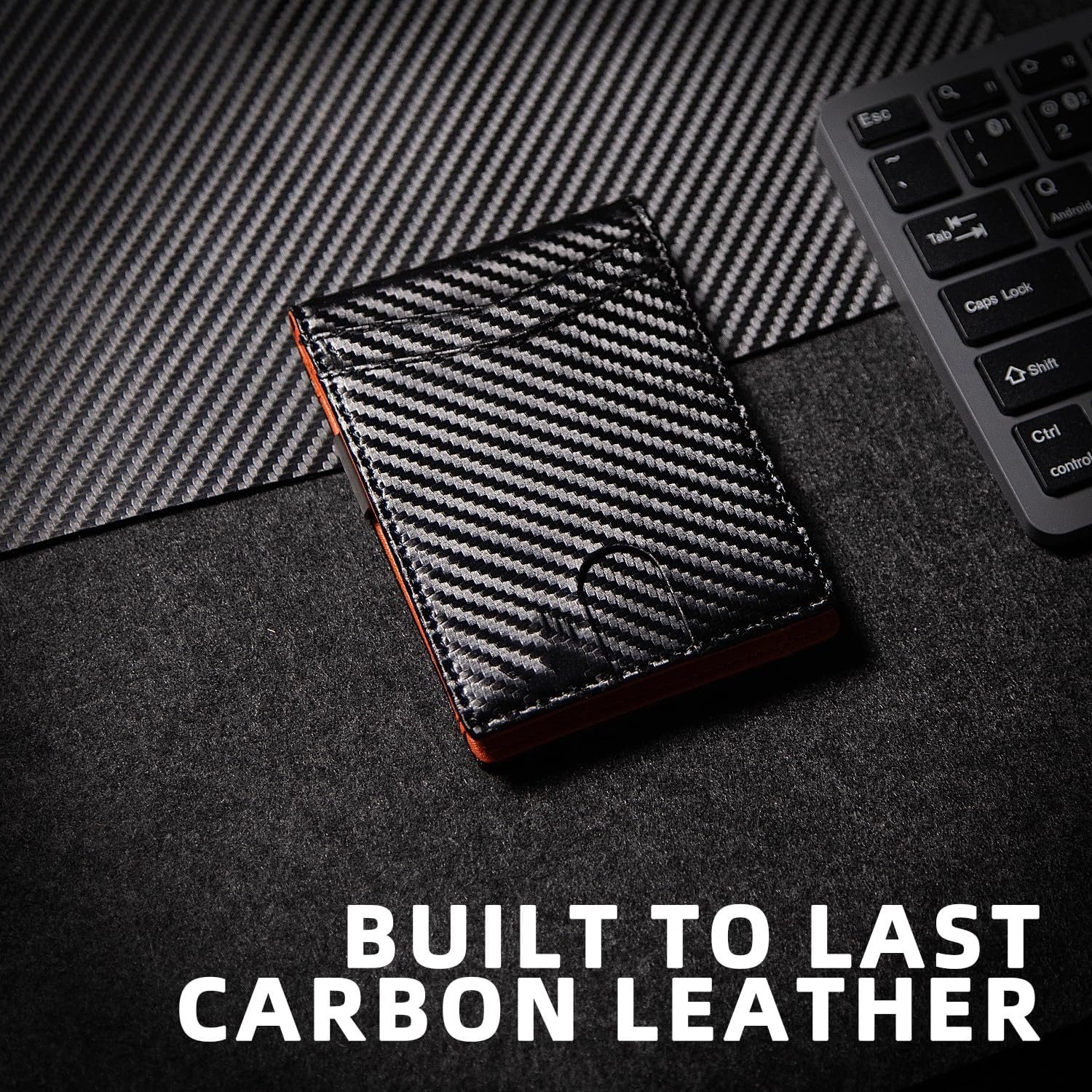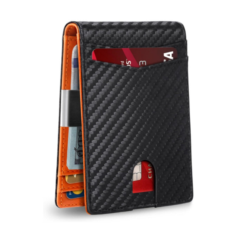 跨境热销超薄美金夹两折碳纤维牛皮钱包RFID防磁钱夹男士短款钱包