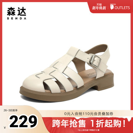 森达奥莱复古罗马鞋夏优雅休闲时尚猪笼鞋粗跟凉鞋SNR01BL3
