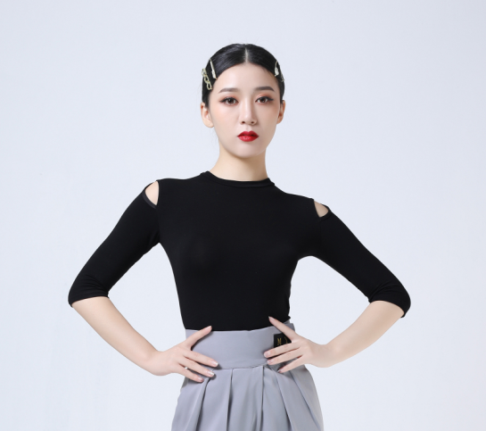 新款拉丁舞服练功服女舞衣上衣舞蹈服装跳舞服装莫代尔长袖短袖