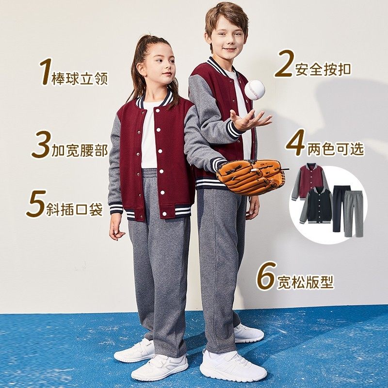 伊顿纪德校服春秋款棒球服运动套装中小学生男女童枣红色加绒外套