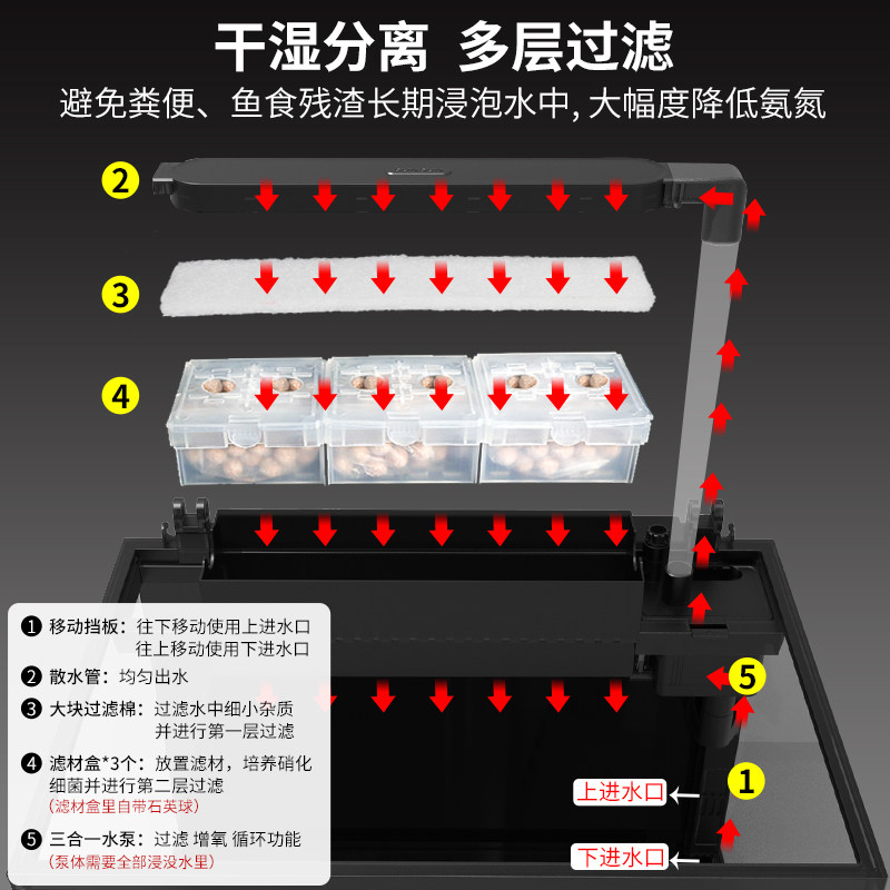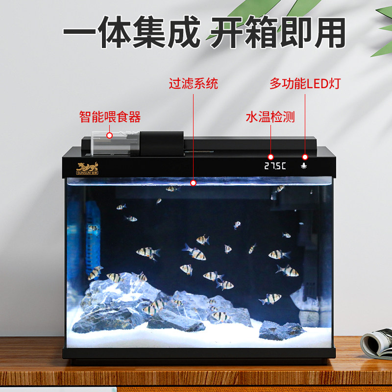 森森超白玻璃鱼缸客厅小型家用水族箱生态免换水过滤制氧金鱼缸