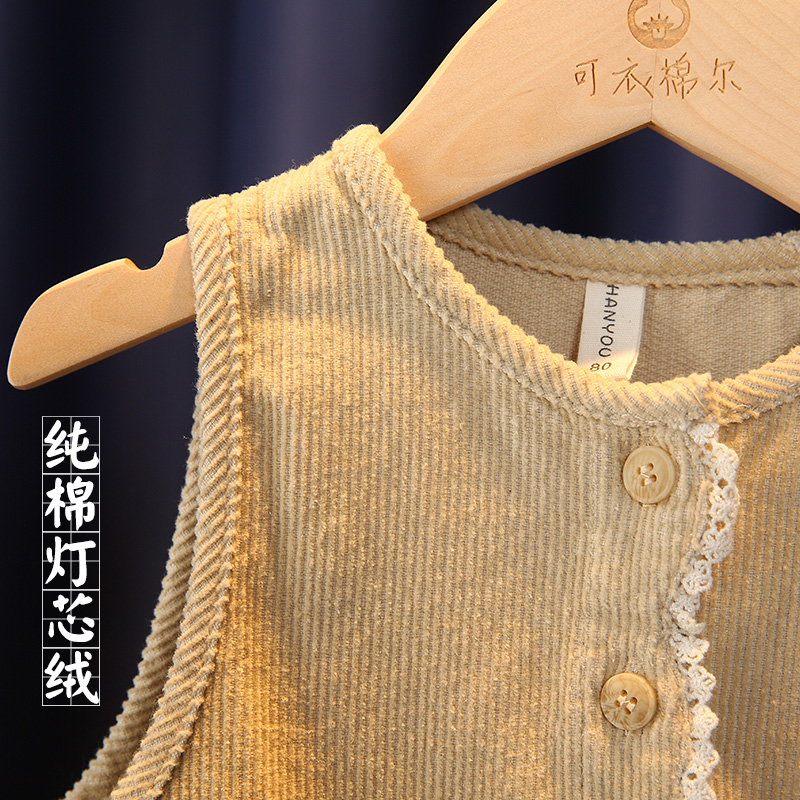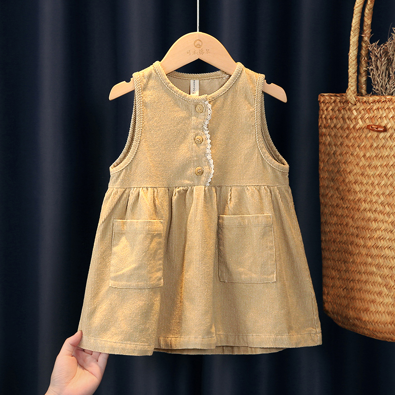 宝宝背心裙秋冬款韩版洋气女童纯棉灯芯绒连衣裙小女孩无袖连体裙
