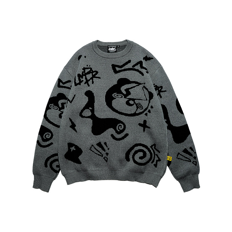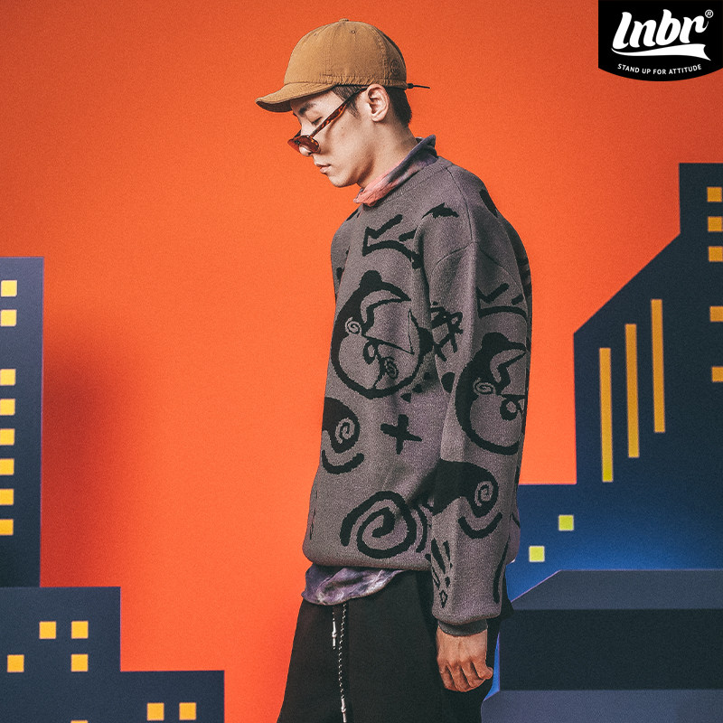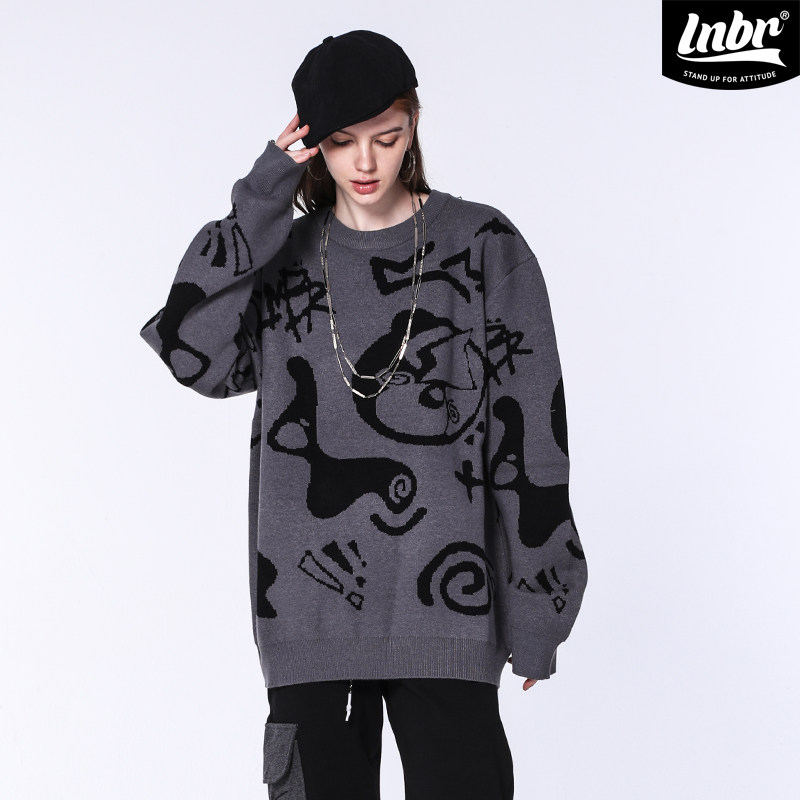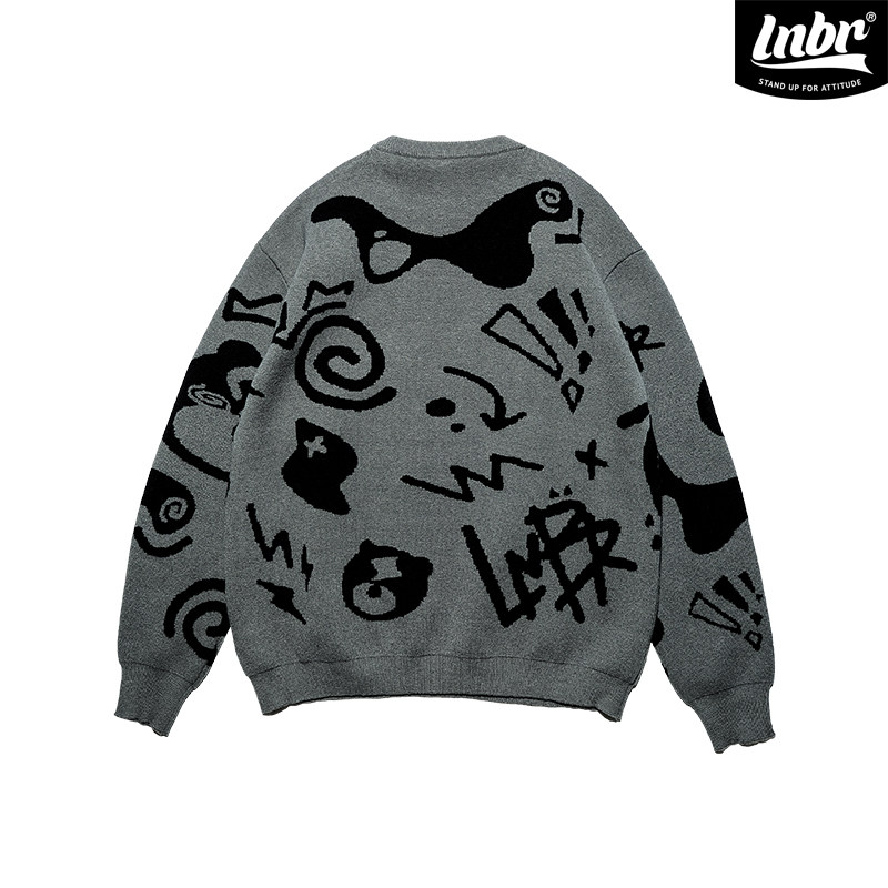 LNBR熊电涂鸦小熊满印毛衣男秋冬情侣潮流百搭针织衫宽松时尚上衣