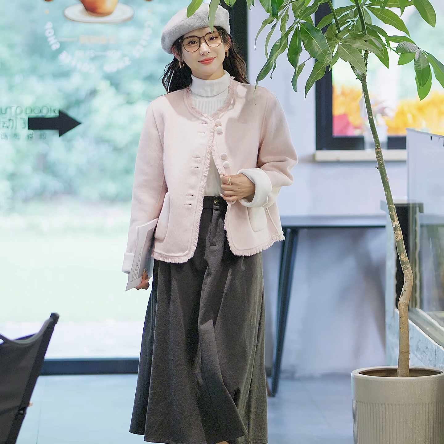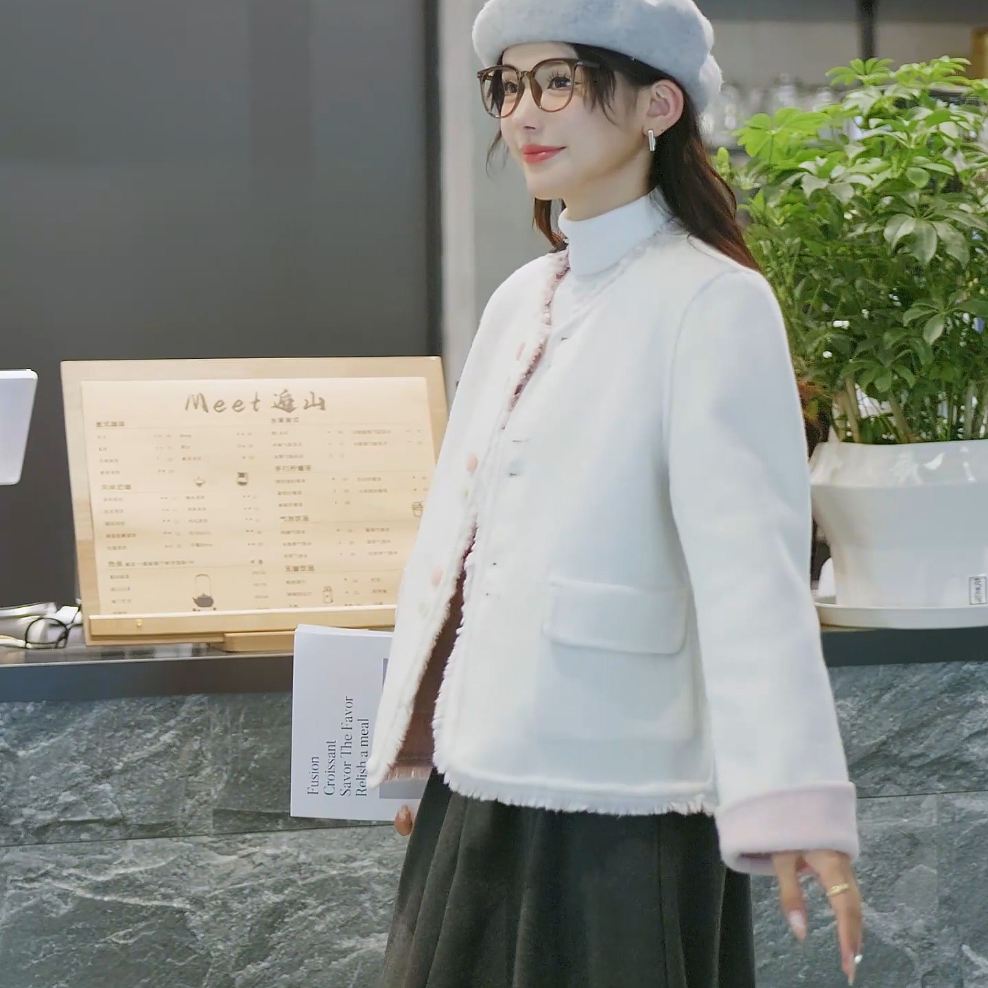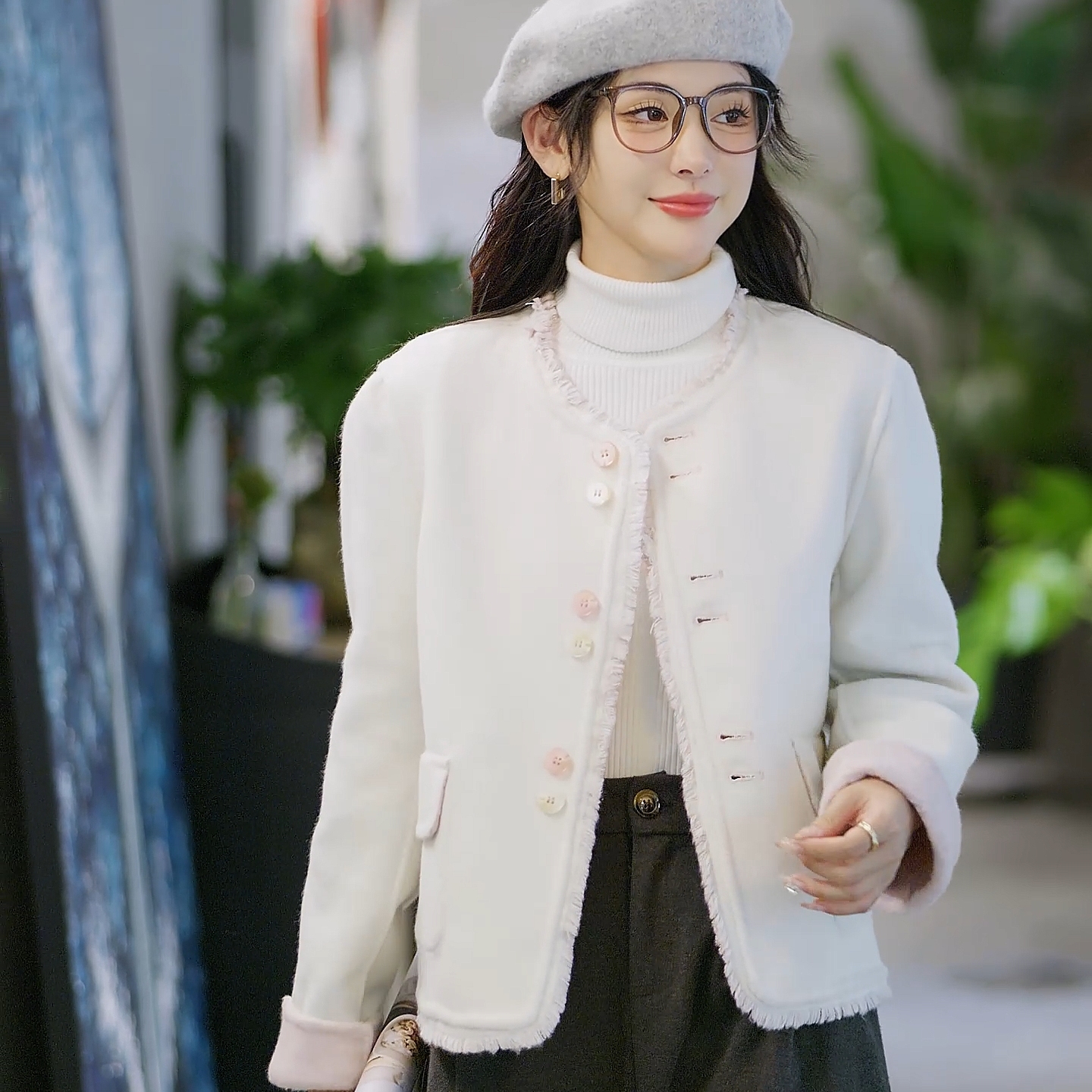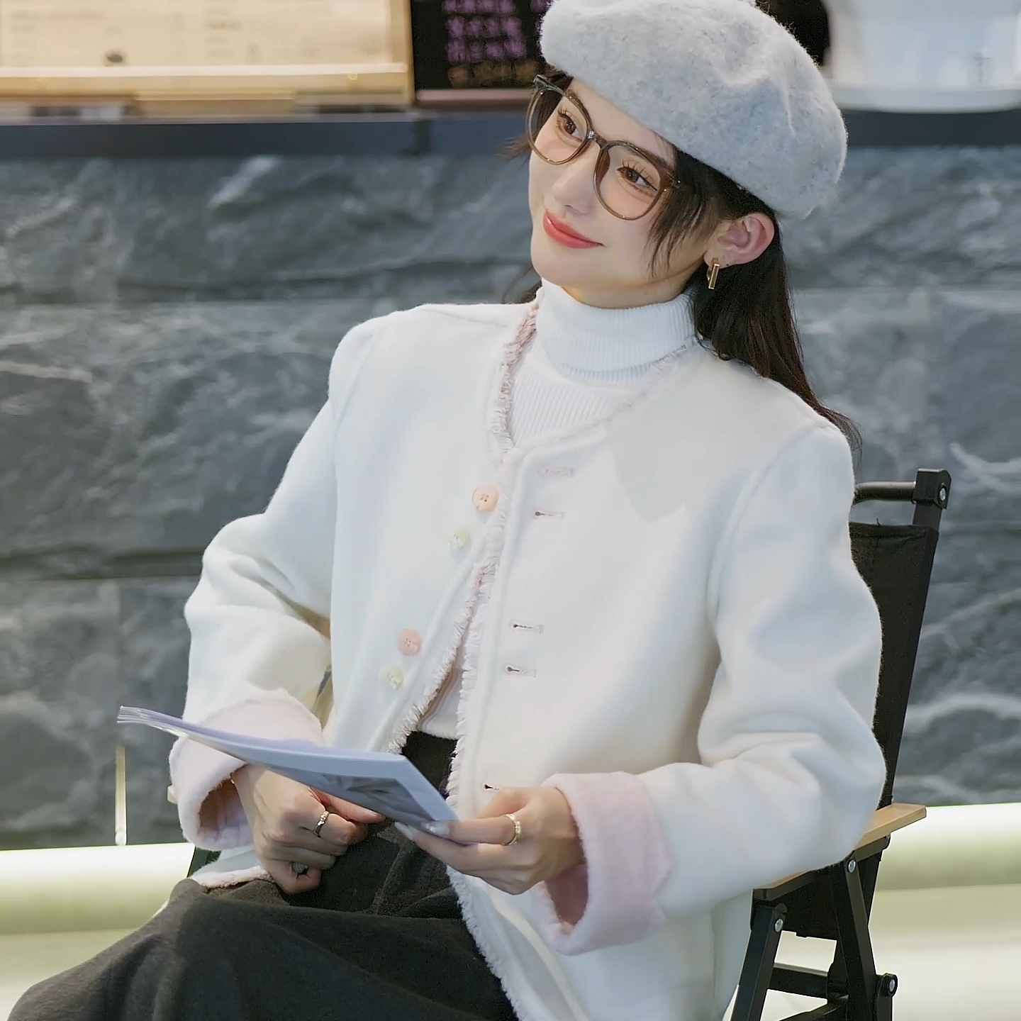小香风双面穿呢子外套女秋冬2025年新款流苏边短款小个子羊毛大衣