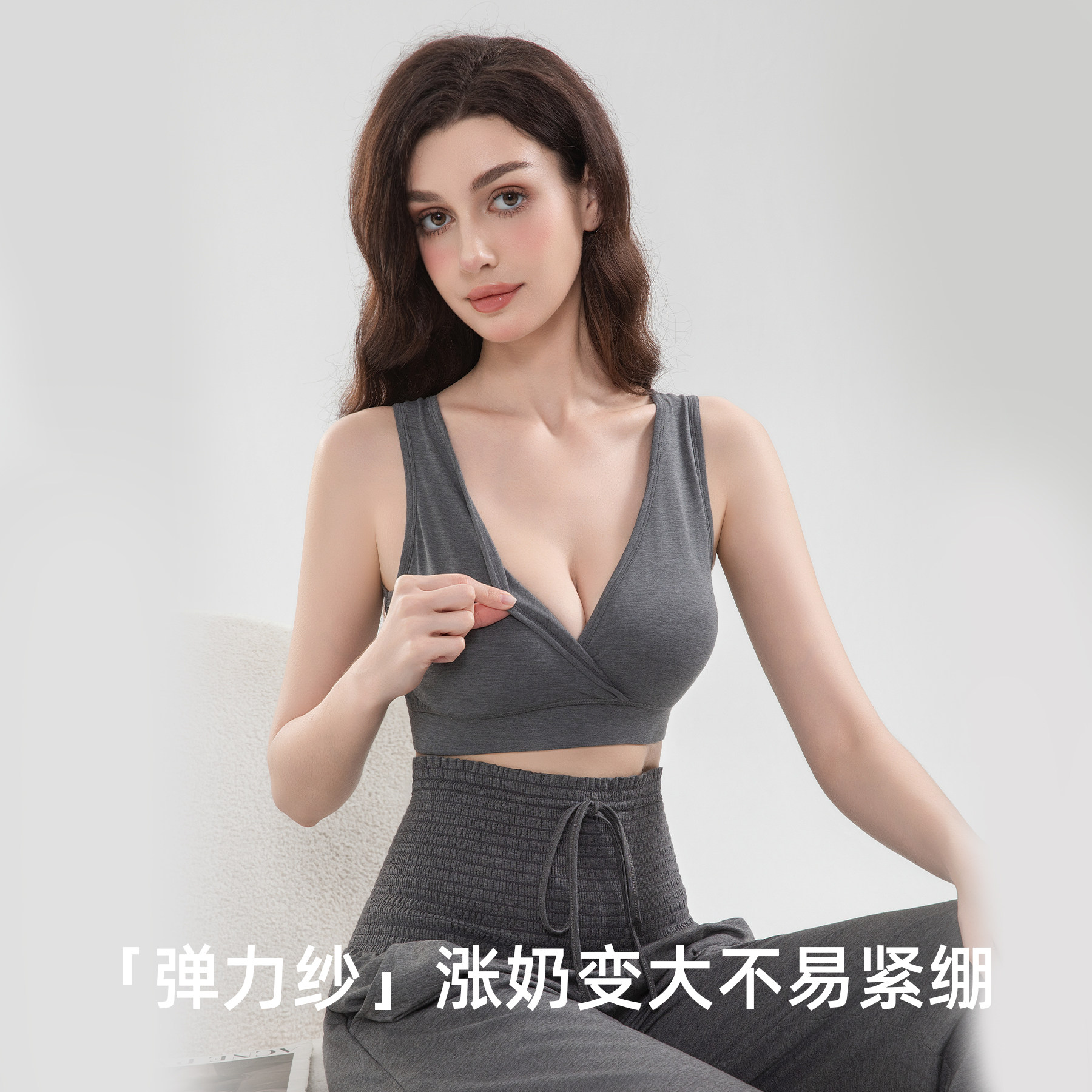 歌美姿天竹哺乳睡眠内衣大胸孕妇孕期产后背心薄款防下垂聚拢喂奶