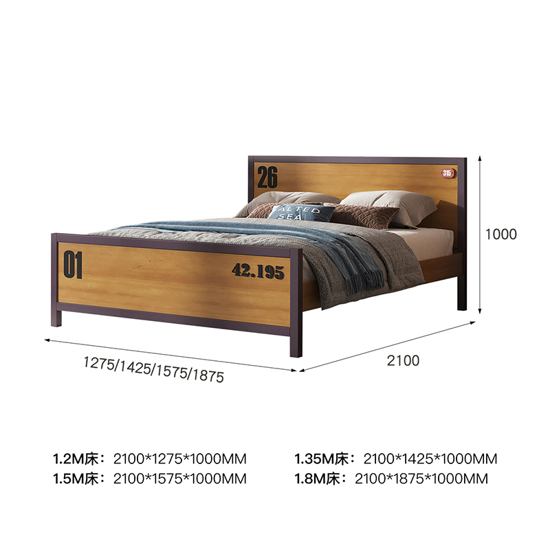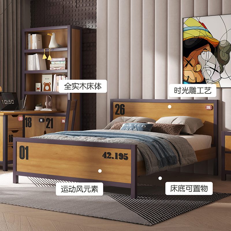 喜梦宝马拉松运动风北欧全实木床加厚床板现代简约青少年儿童床