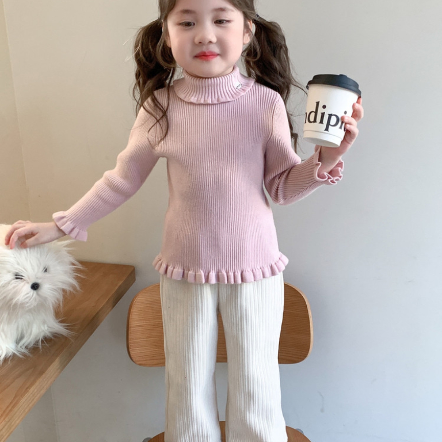 女童打底衫2025新款洋气高领加绒加厚保暖针织套头毛衣木耳边好看
