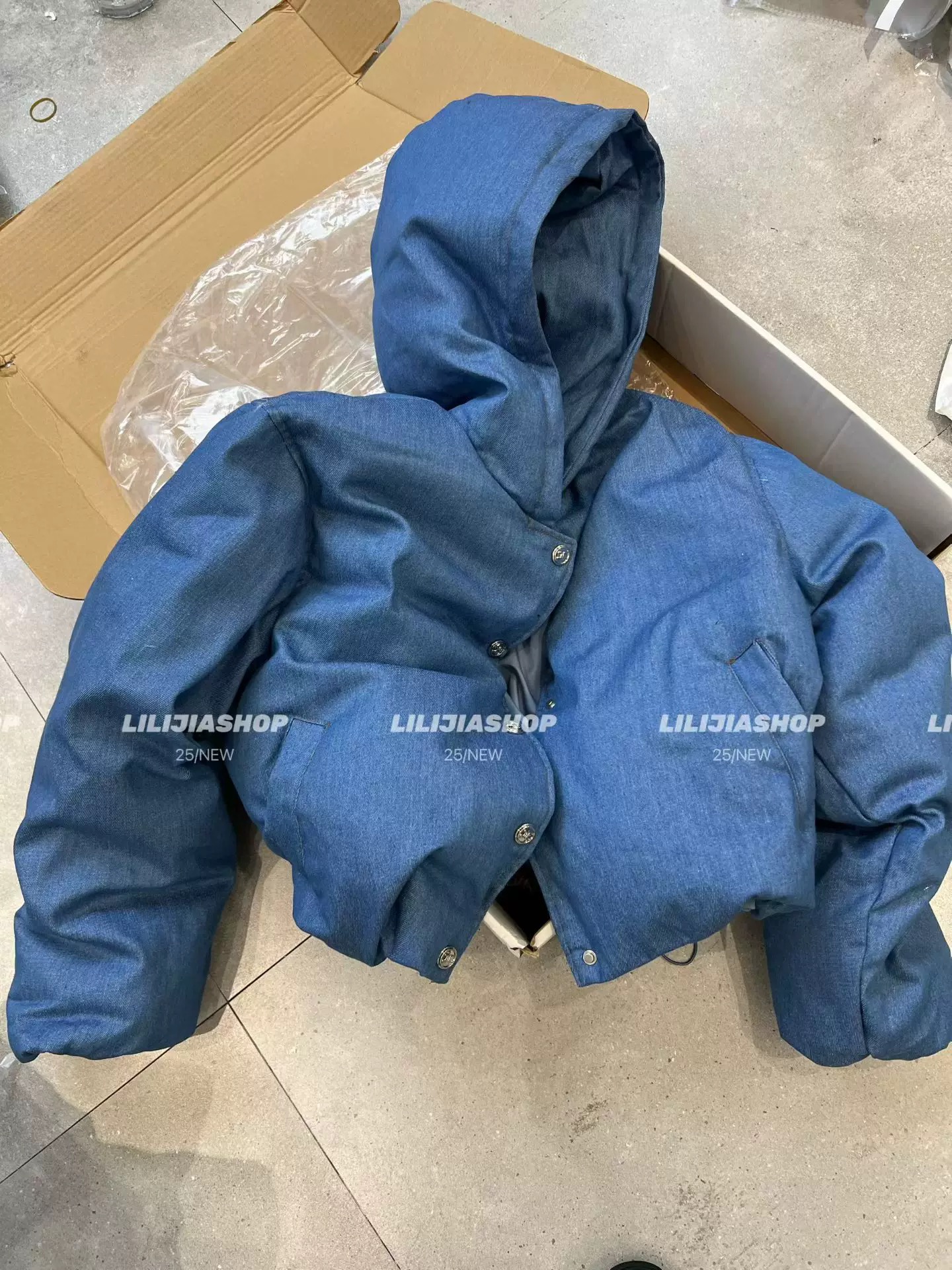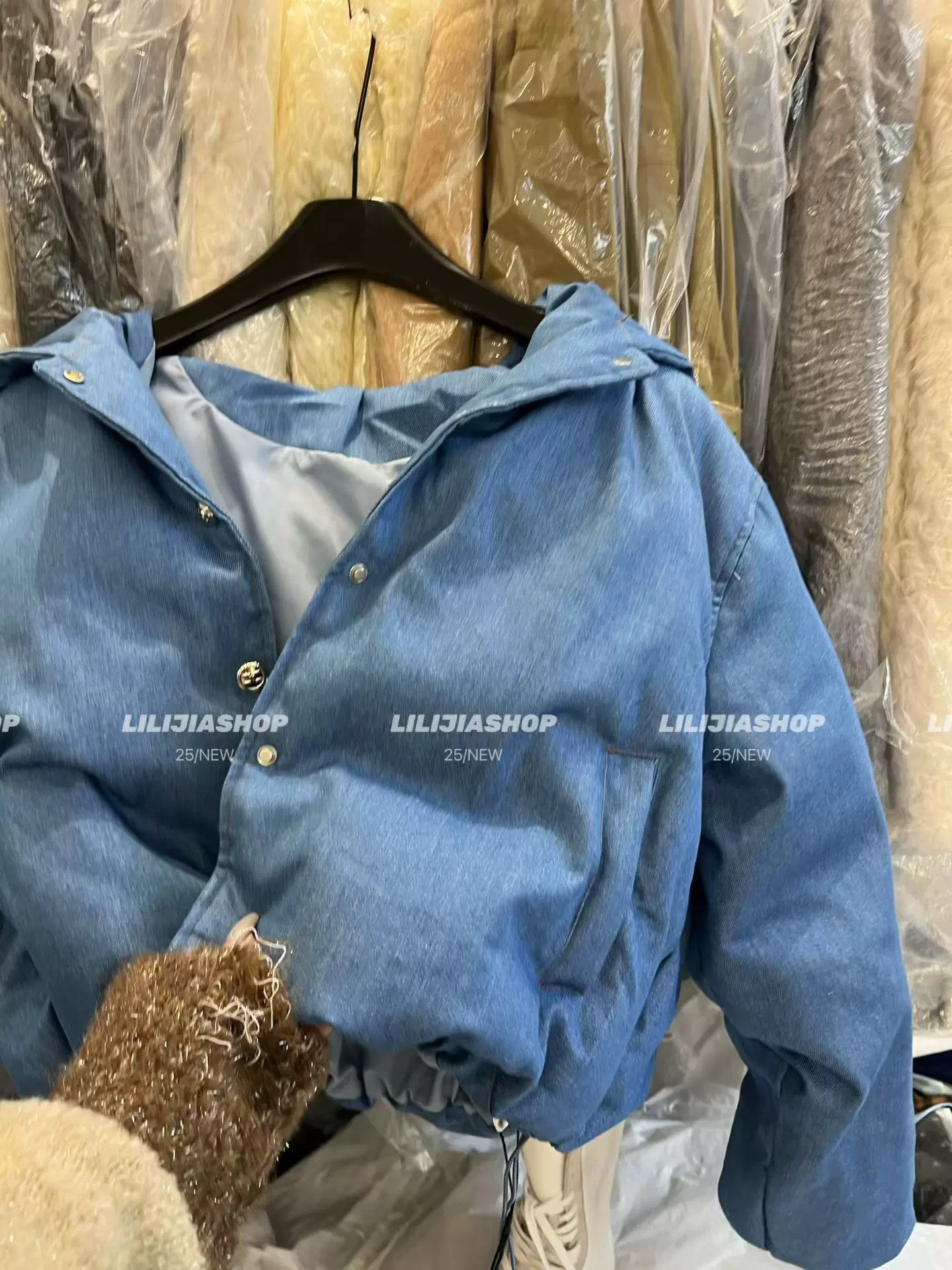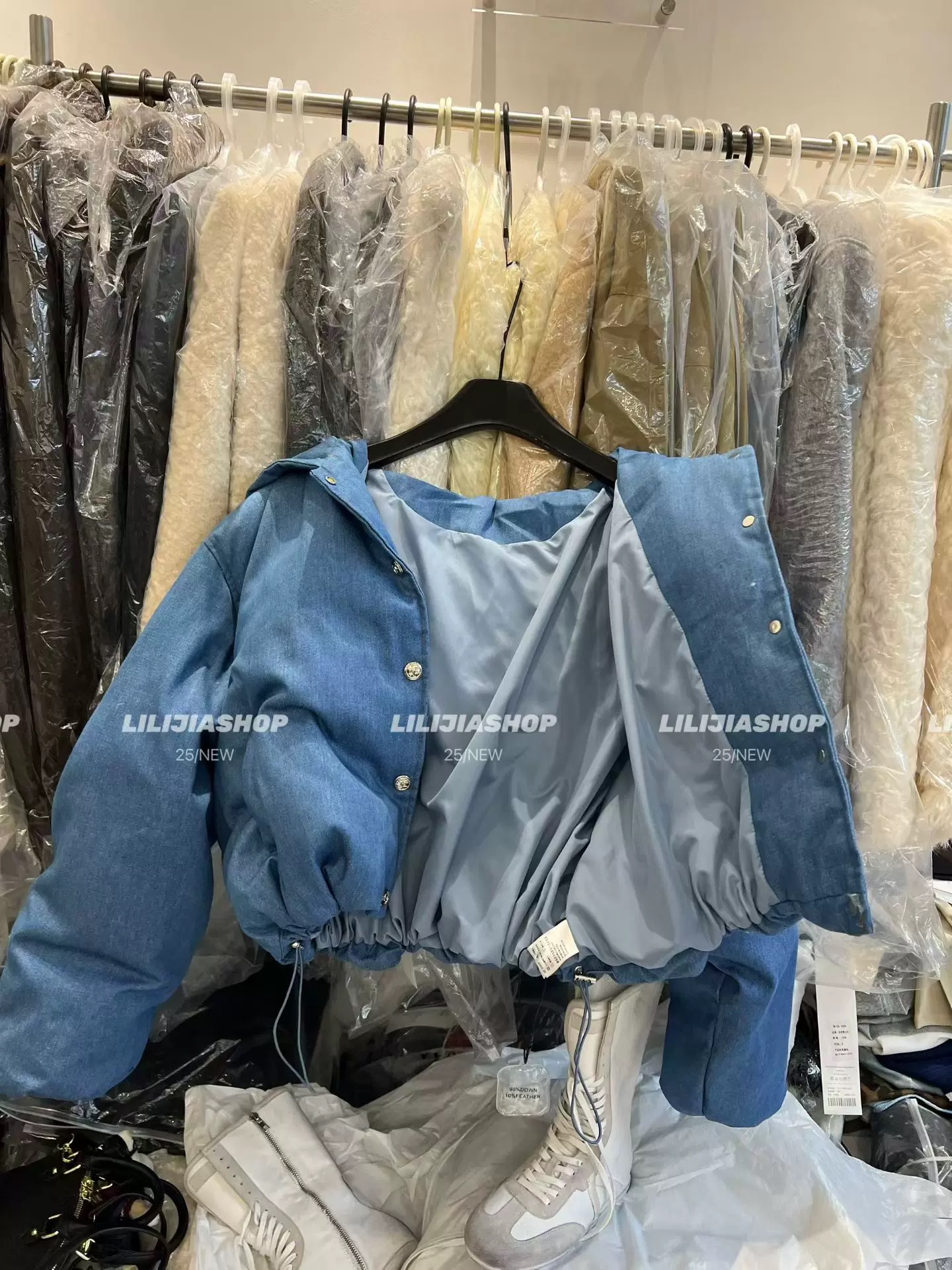 韩国东大门2025秋冬新款韩版宽松休闲连帽牛仔羽绒服外套短款上衣