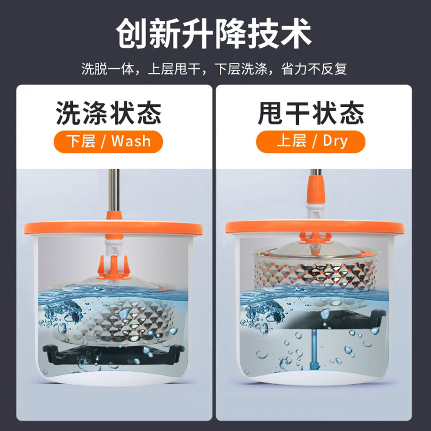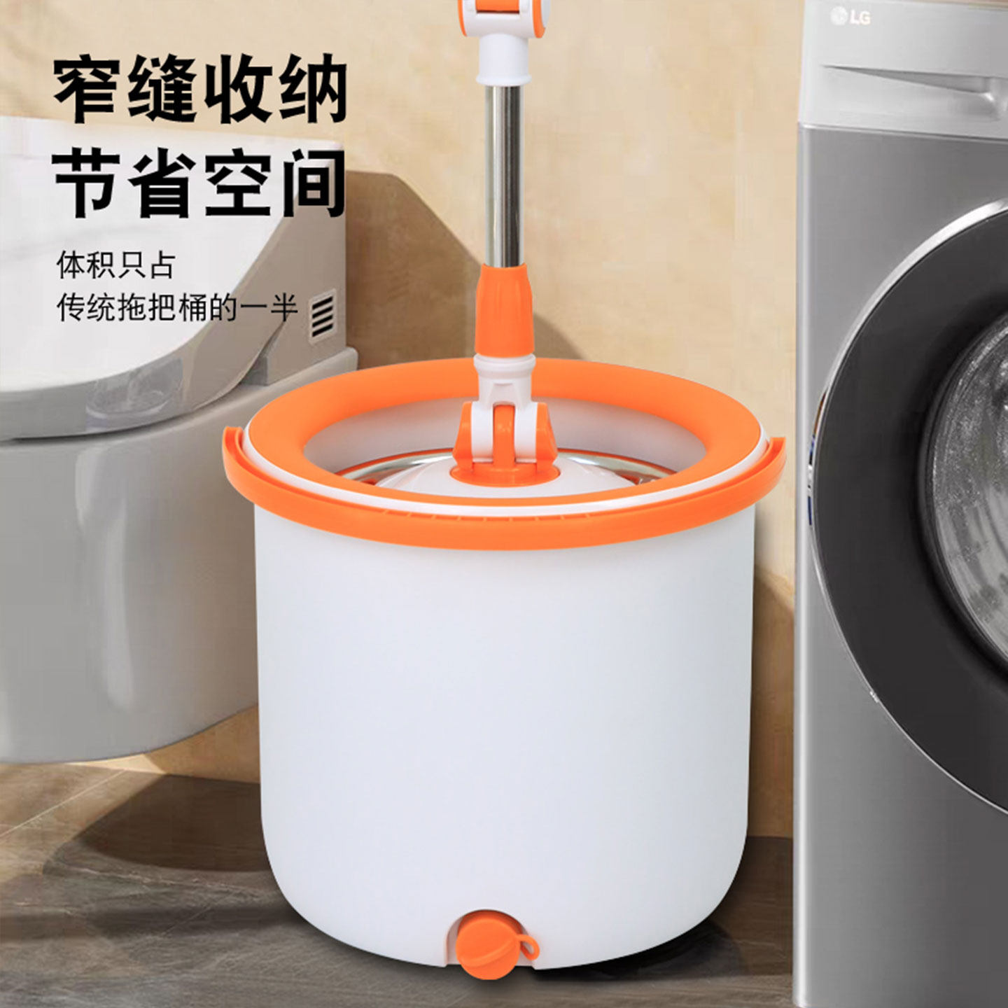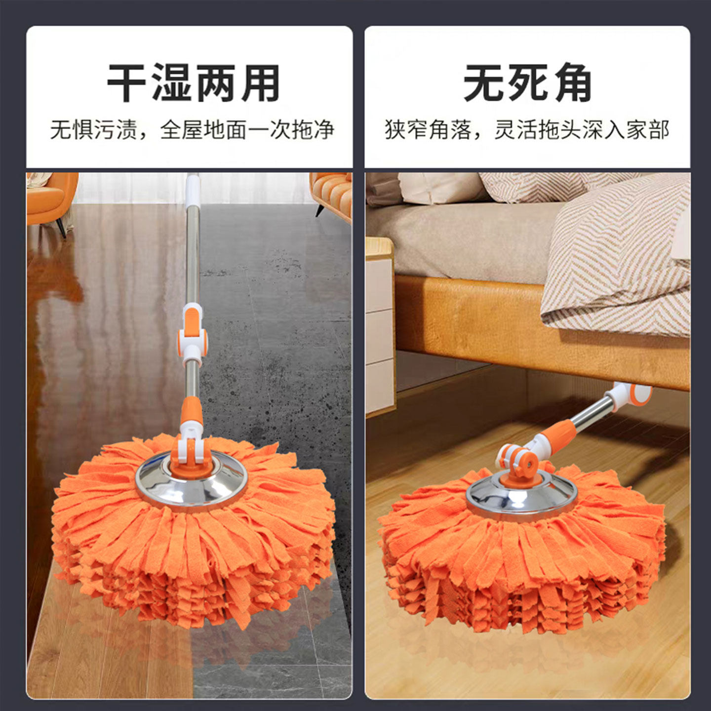 妙佳旋转拖把桶家用新款毛巾布加长杆洗甩一体不缠头发地拖拖地
