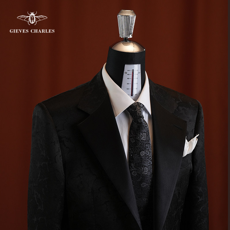 【卓雅系列】1881进口面料黑色佩斯利暗花商务休闲高端西服套装男