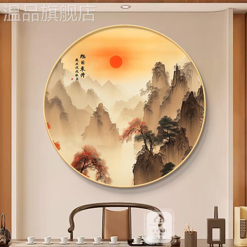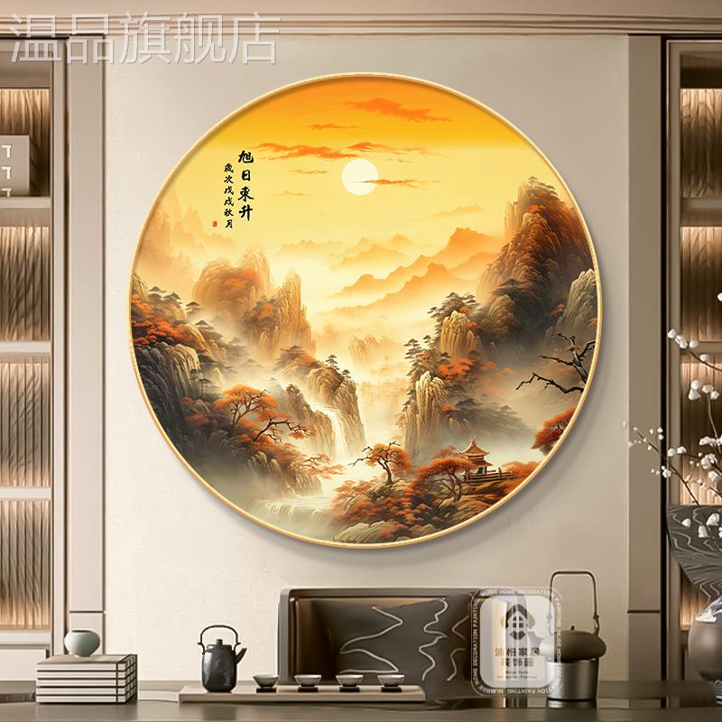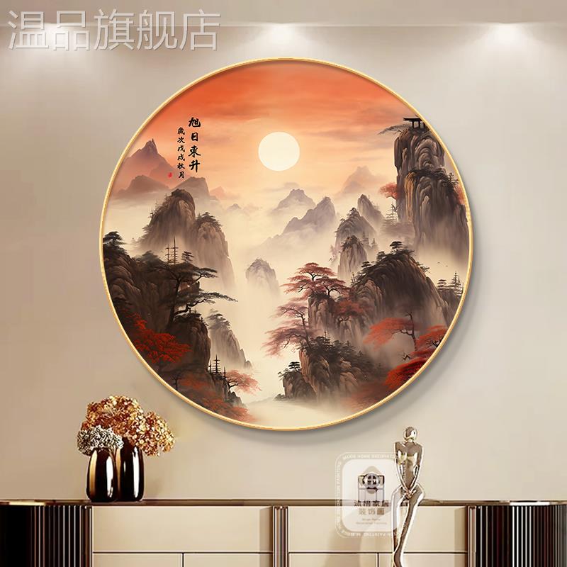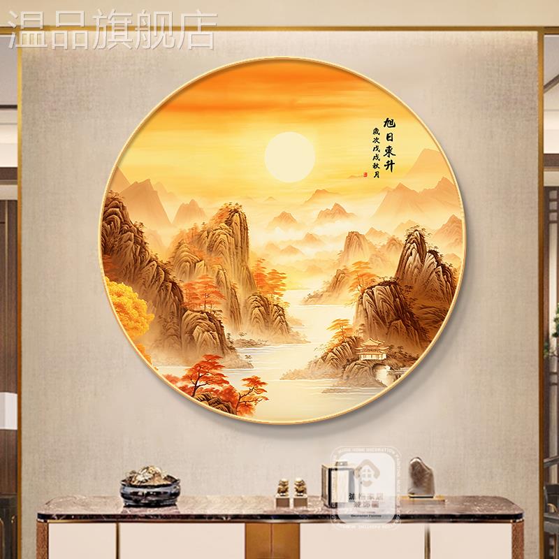 旭日东升圆形餐厅装饰画客厅玄关背景墙壁画日出东方日照金山挂画