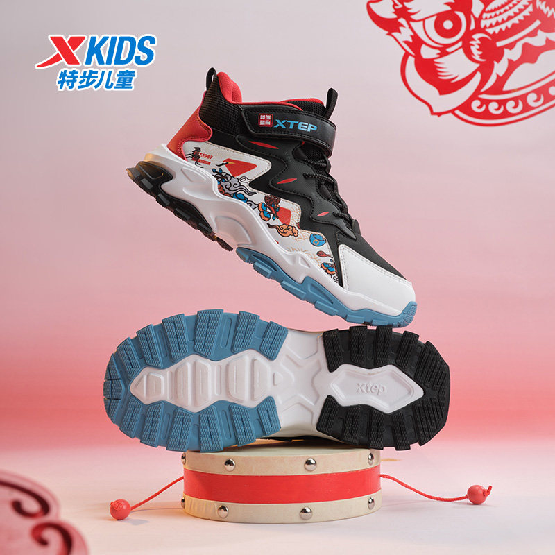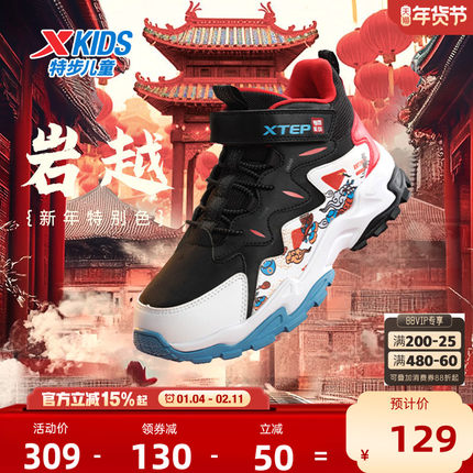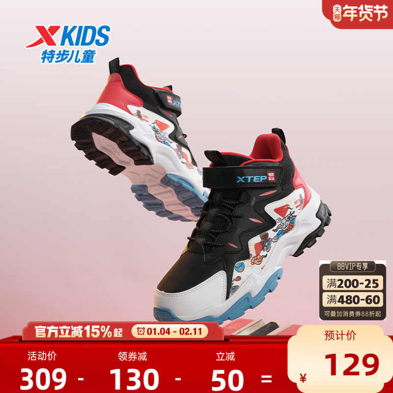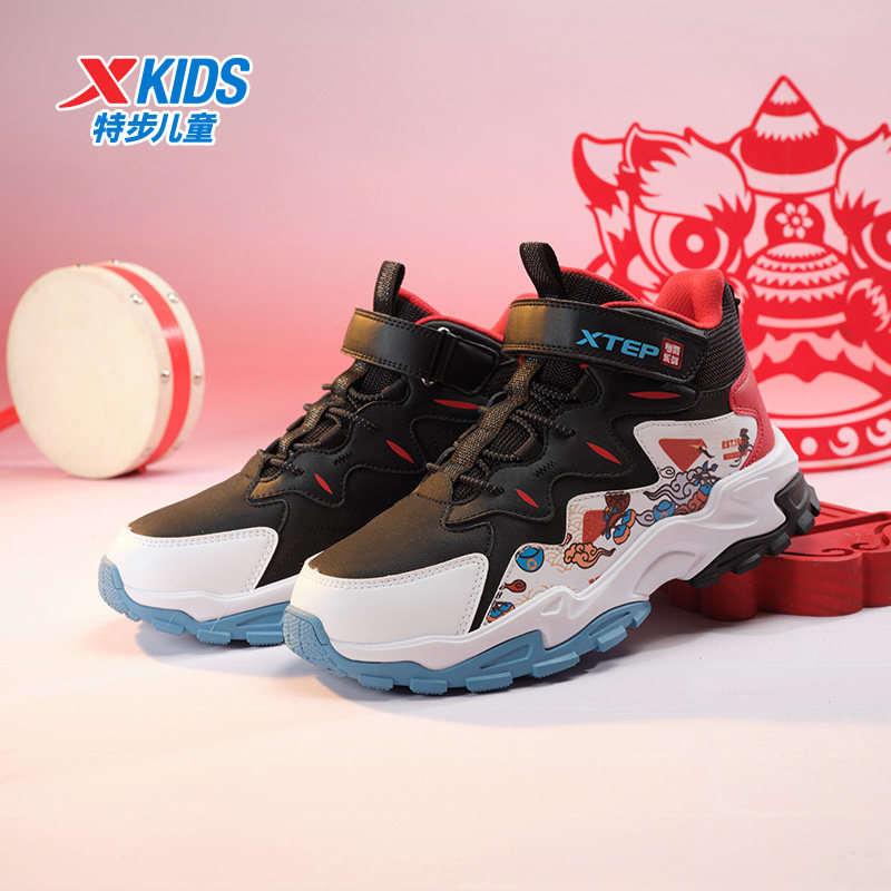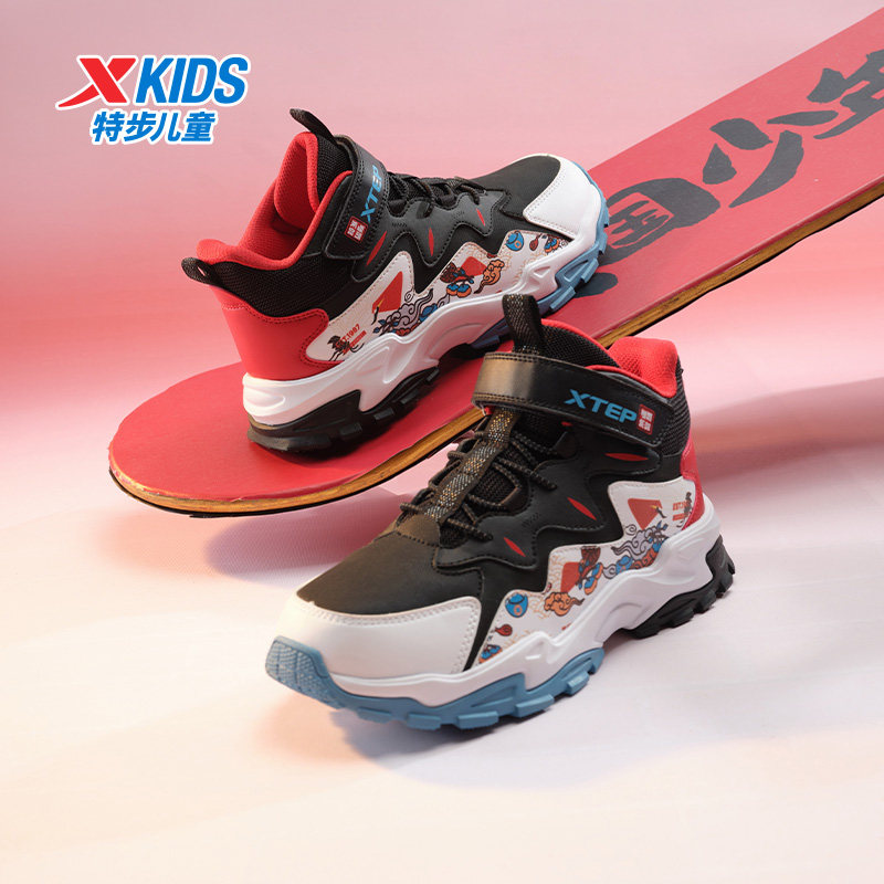 特步男童鞋冬季革面鞋新款魔术贴防滑中大童运动鞋儿童鞋子保暖鞋