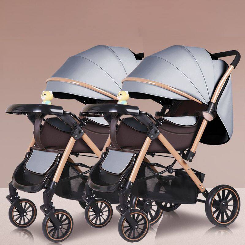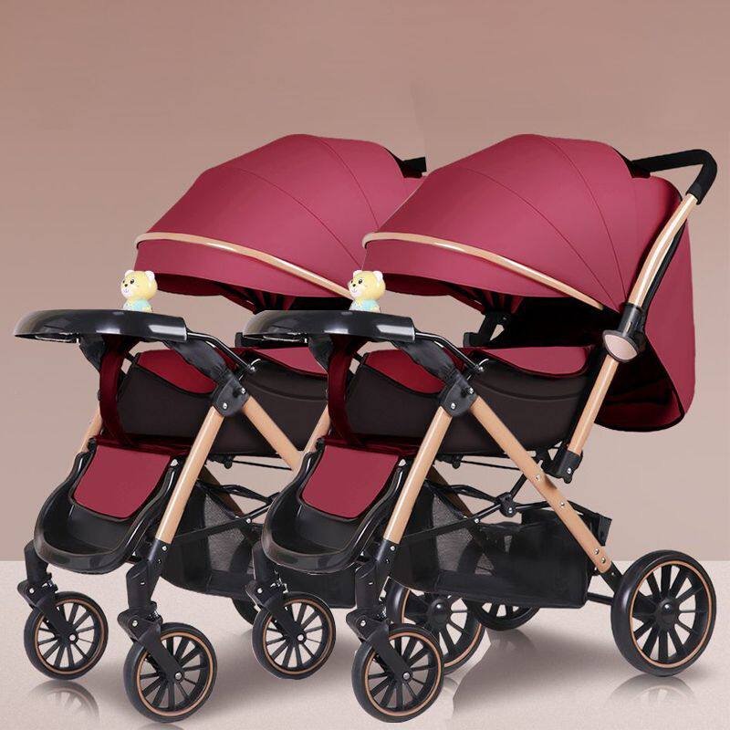并联式双胞胎婴儿手推车可坐可躺双向推行婴儿车四轮避震0到3岁