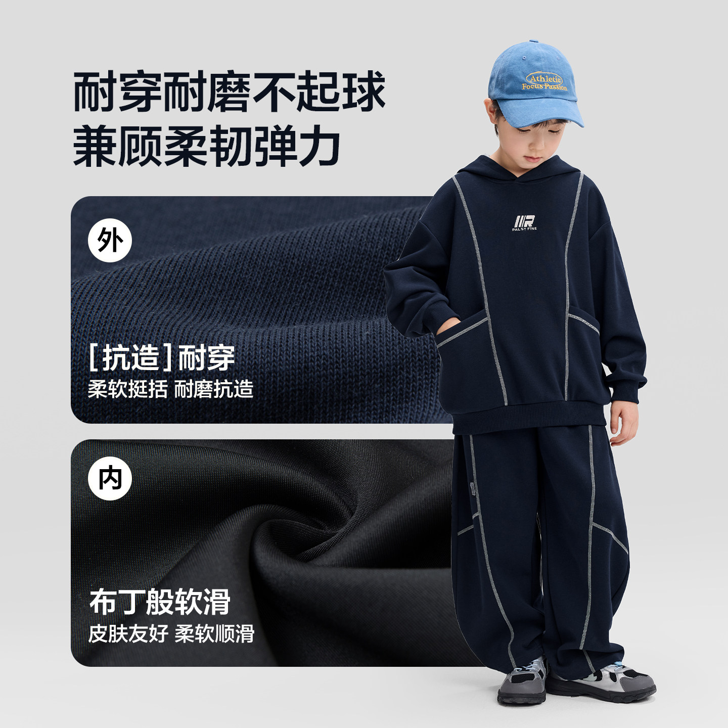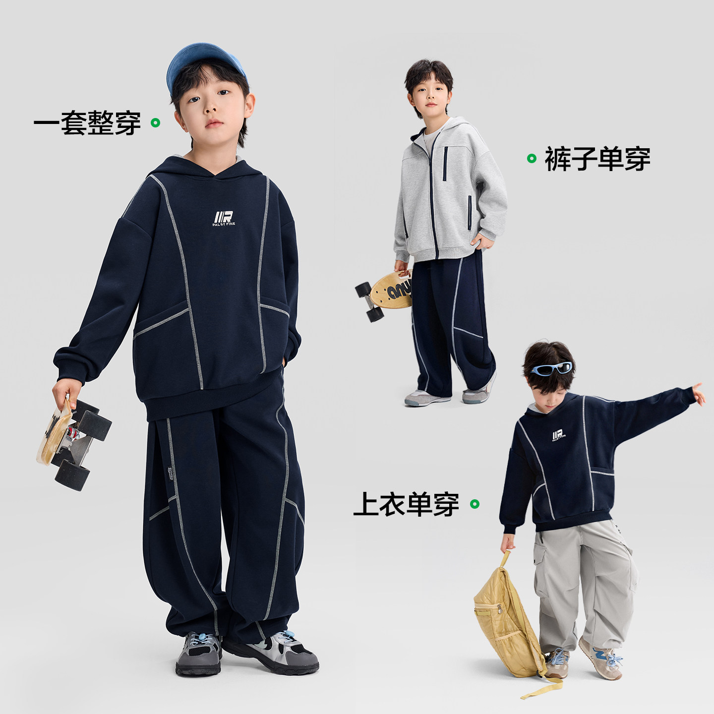 左西童装男童套装运动风连帽卫衣裤子春装2026新款男孩大童两件套