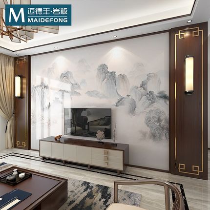 2024新中式岩板电视背景墙瓷砖客厅大理石影壁墙砖护墙板边框装饰