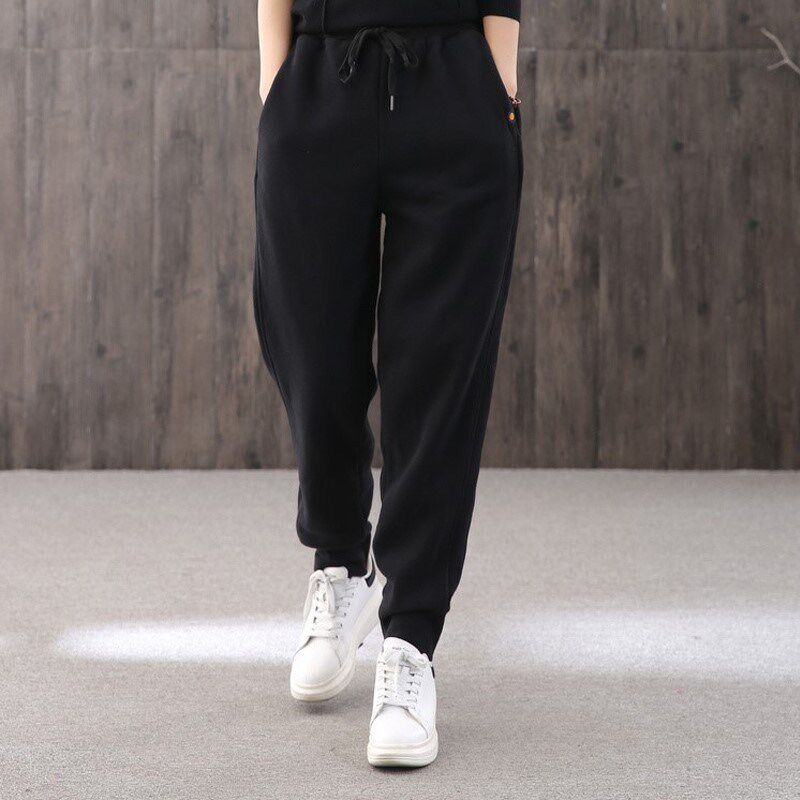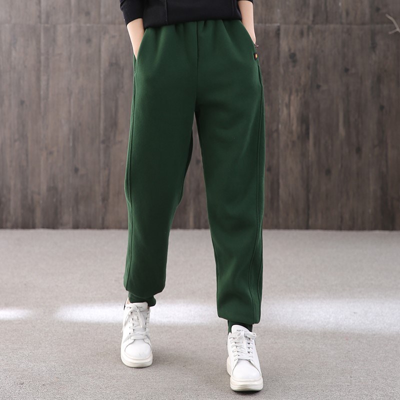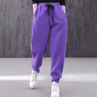 运动卫裤女2025加绒加厚新款韩版纯棉保暖休闲哈伦裤宽松女士长裤