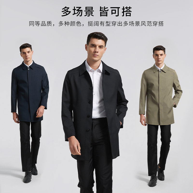 雅鹿风衣外套男中长款2024春秋季新款男士翻领休闲商务行政夹克衫