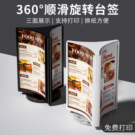 三面旋转台卡菜单价格价目表展示牌亚克力立牌摆台展示架a4桌牌a56餐牌菜单台牌桌面广告酒水牌吧台三角台牌
