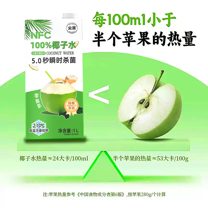 尖派椰子水100%NFC椰子水纯无添加补水电解质饮料椰青水椰汁水