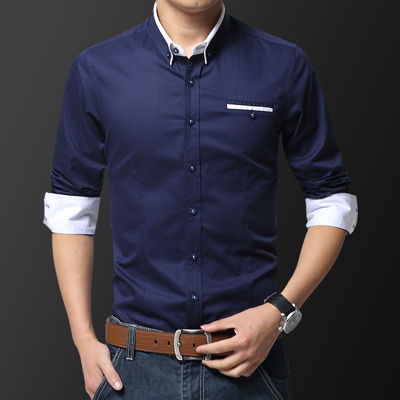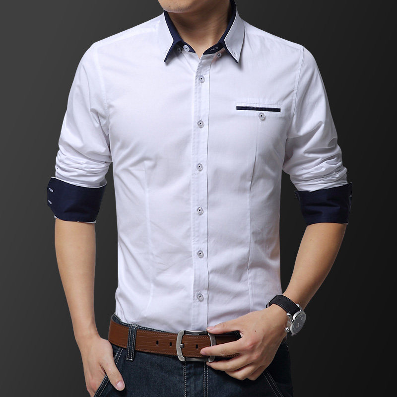 2025春季男士衬衫白色百搭潮流韩版修身衬衣商务立领春秋休闲寸衣